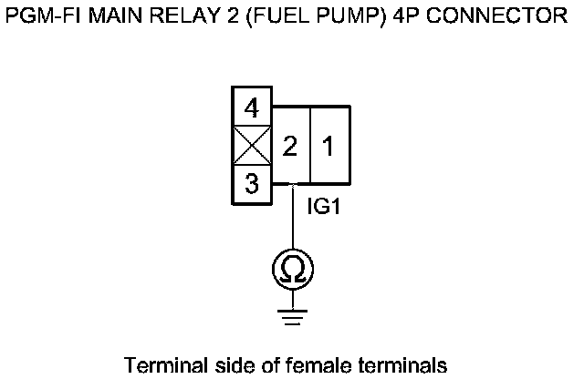 38. Check for continuity between body ground and PGM-FI main relay 1 4P connector terminals No. 1 and No. 4 individually.