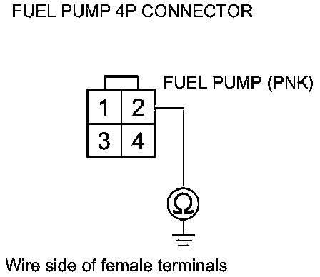 53. Check for continuity between fuel pump 4P connector terminal No. 2 and body ground.