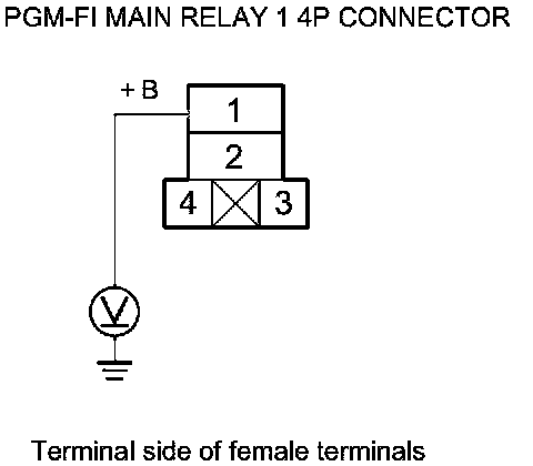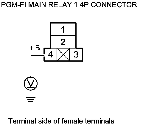 61. Measure the voltage between PGM-FI main relay 1 4P connector terminal No. 4 and body ground.
