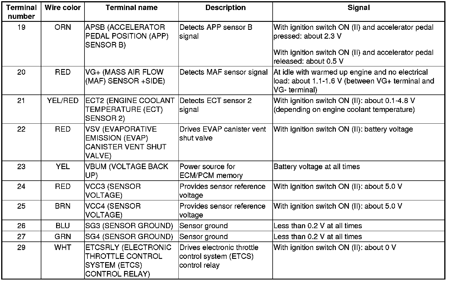 ECM/PCM Inputs and Outputs at ECM/PCM Connector C (circle) (49P)