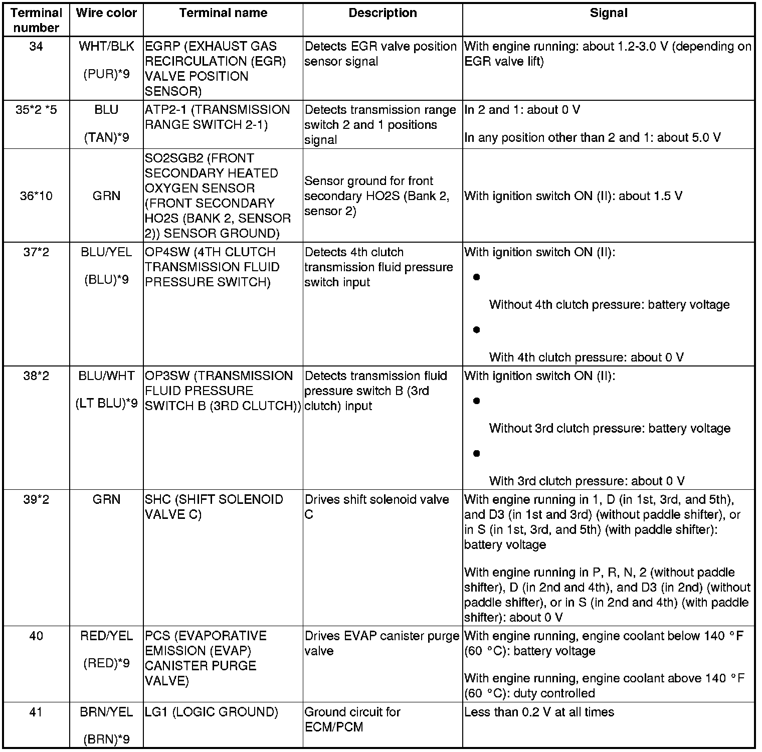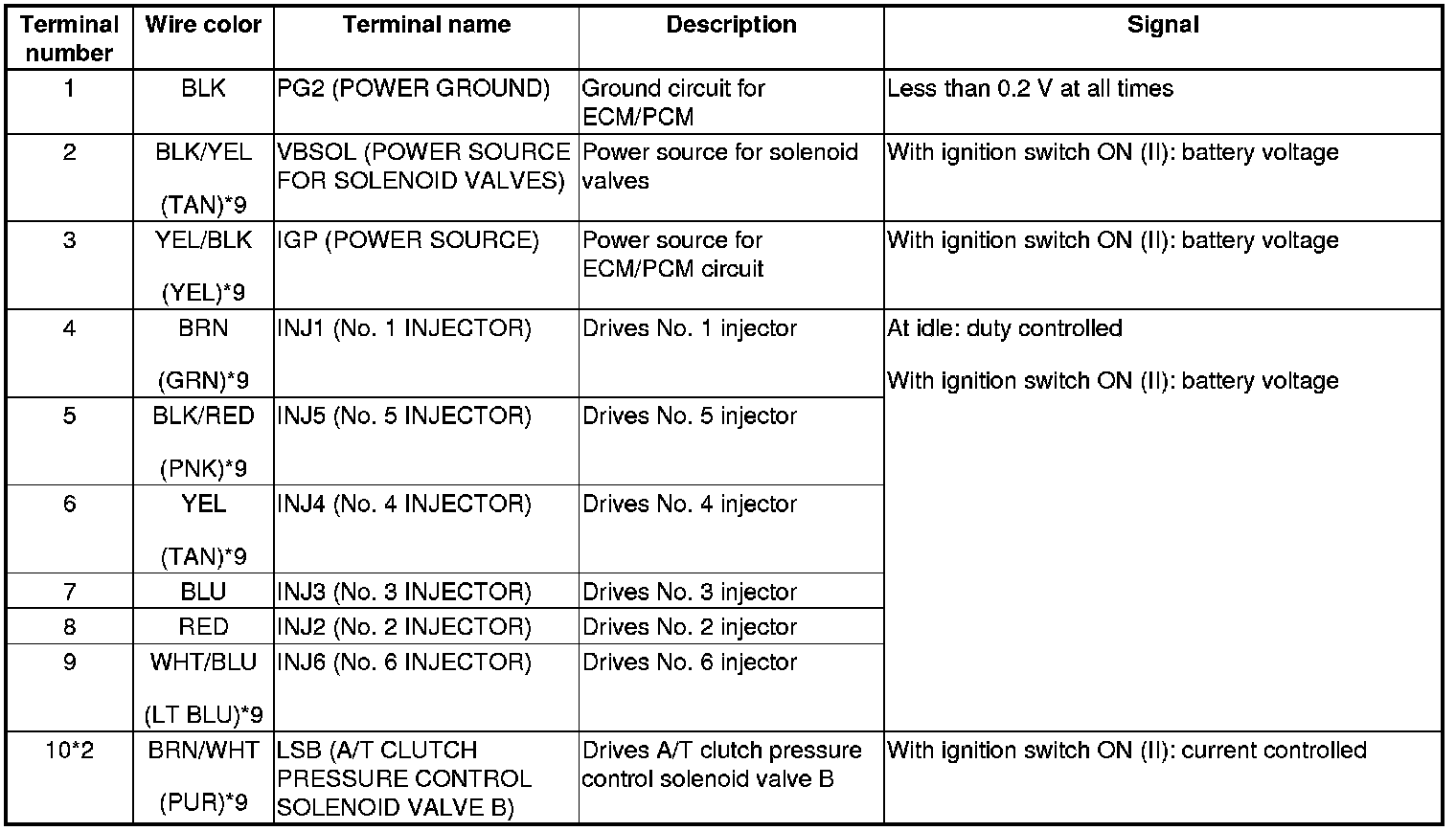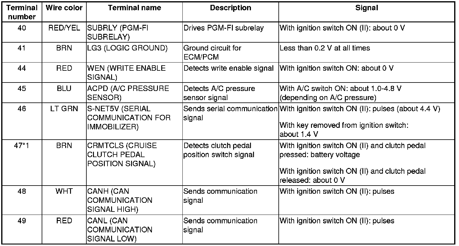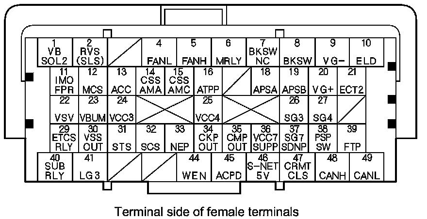 ECM/PCM Inputs and Outputs at ECM/PCM Connector A (square) (49P)