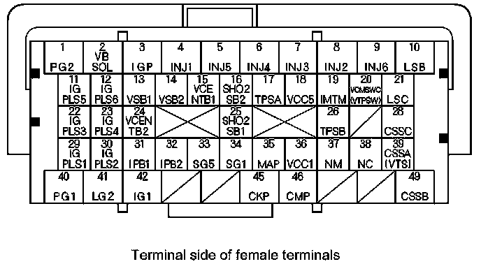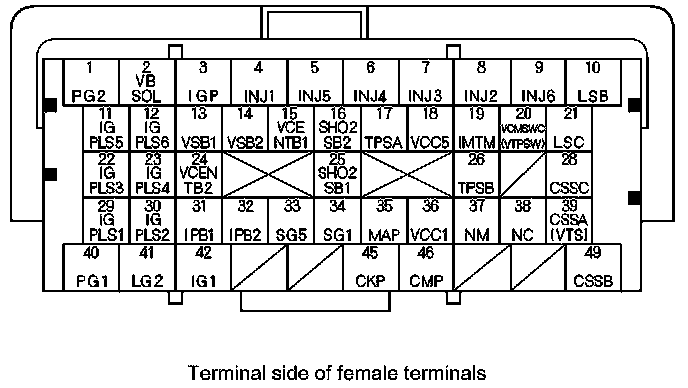 ECM/PCM Inputs and Outputs at ECM/PCM Connector B (triangle) (49P)