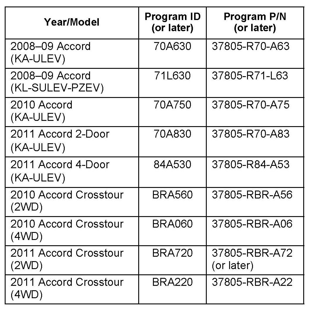 The updated PGM-FI software program IDs and P/Ns are listed below. If the HDS or MVCI is loaded with the latest software, and it displays No Update Needed during the update, the software for this service bulletin is already installed.