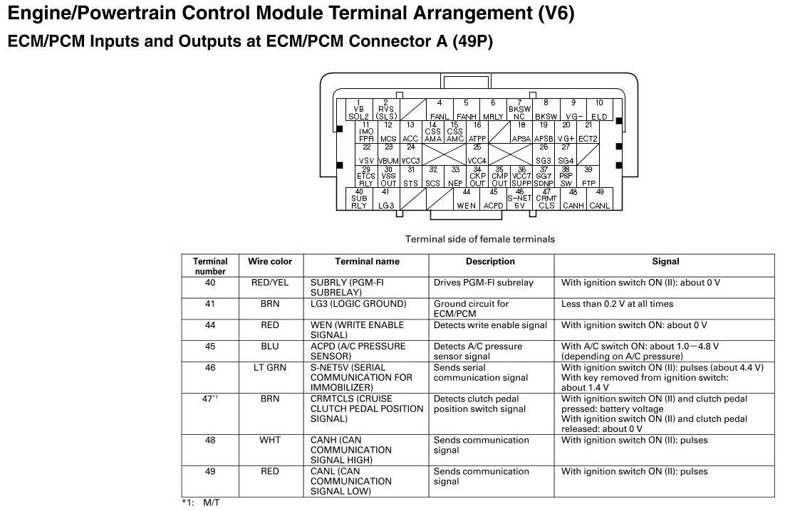 ECM/PCM Inputs And Outputs At Connector A