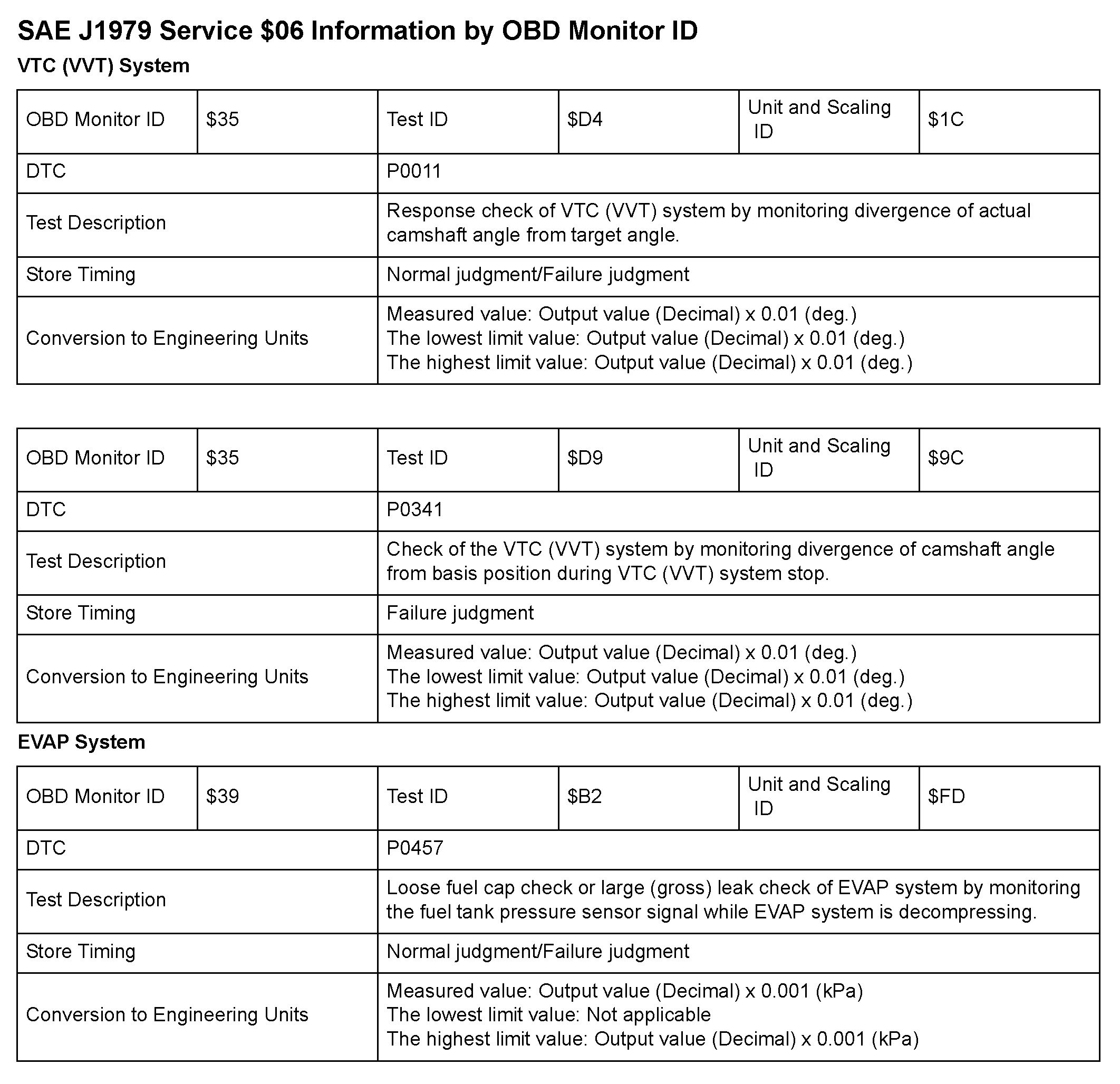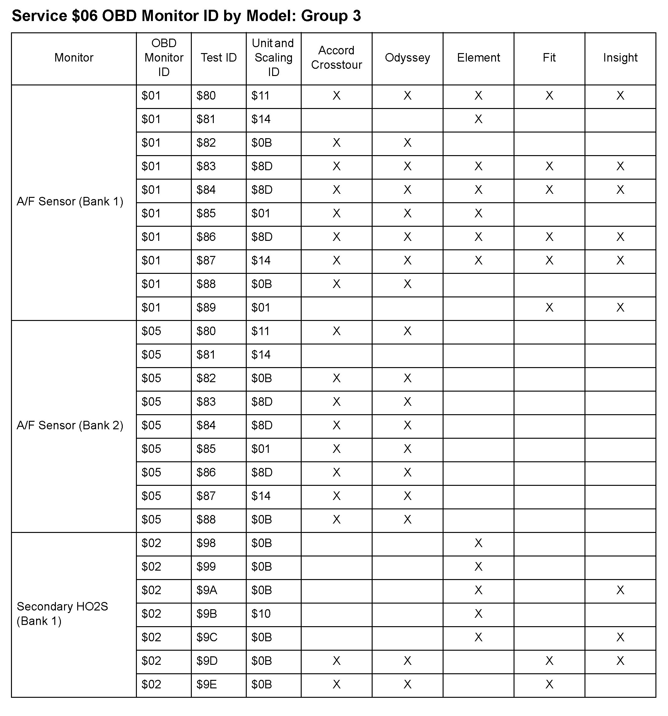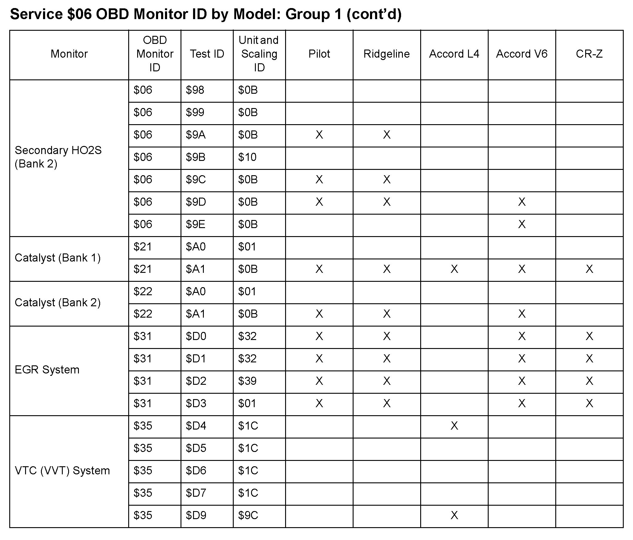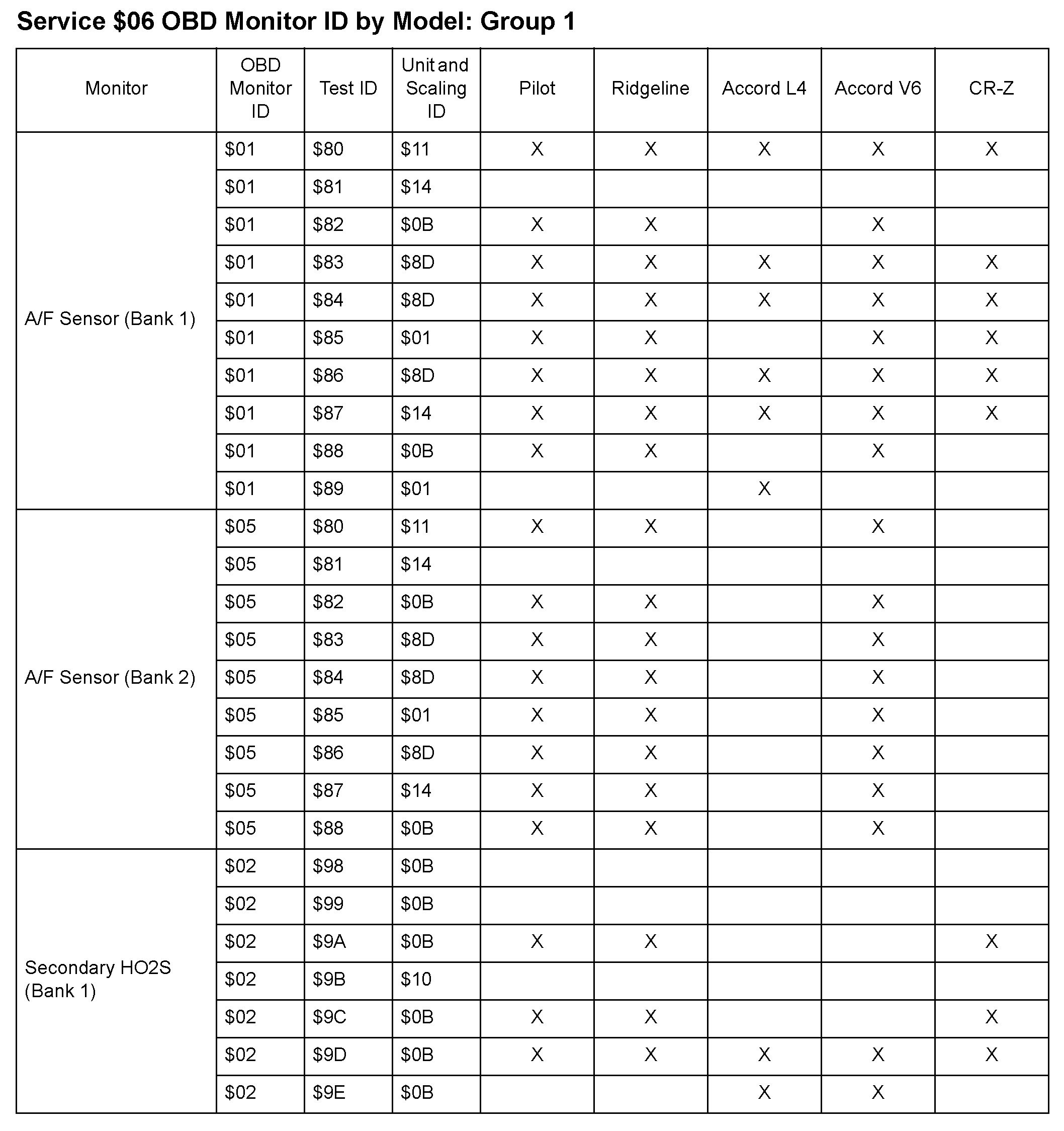SAE J1979 Mode/Service $06 Test Information: All 2010 Hondas