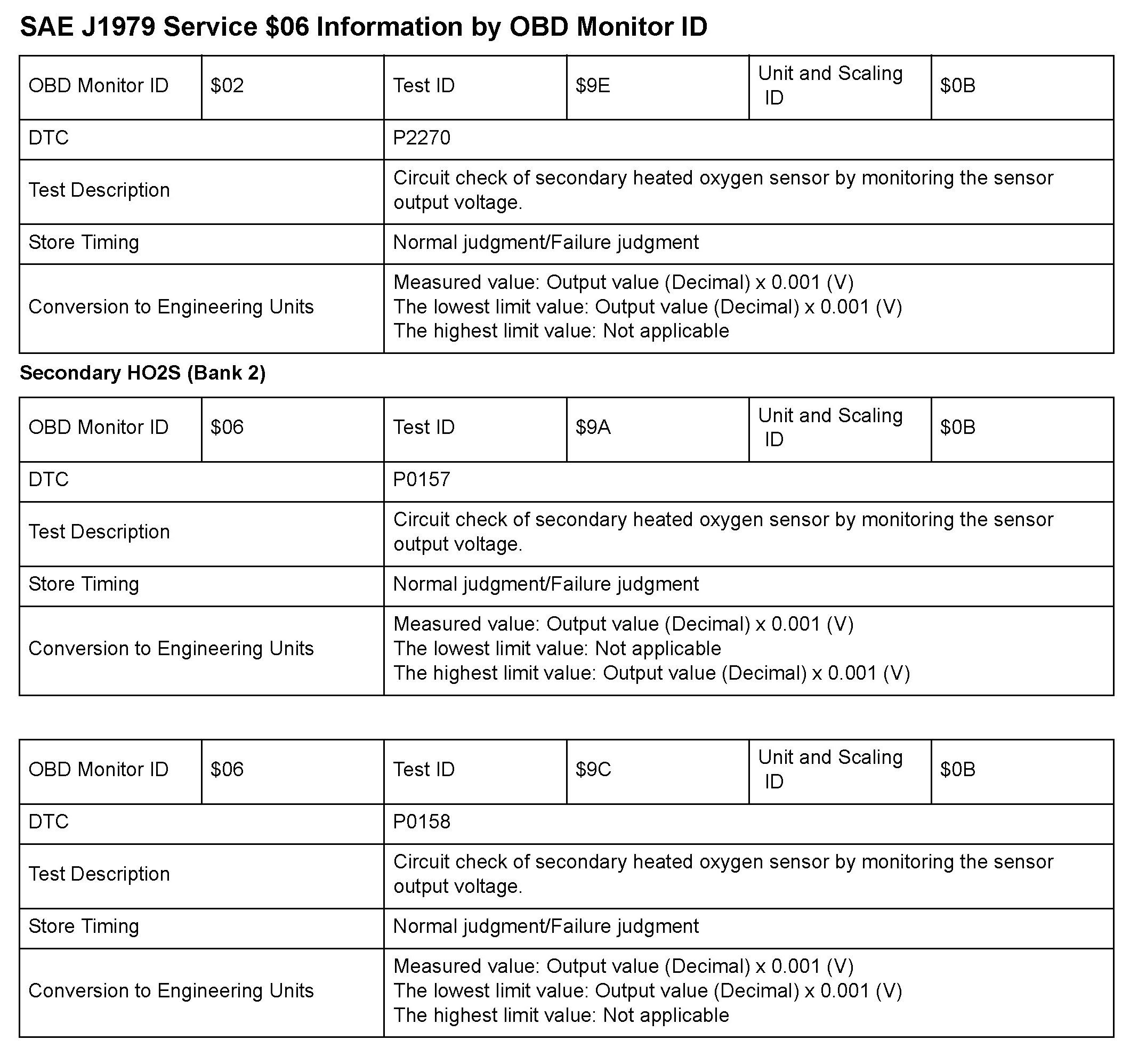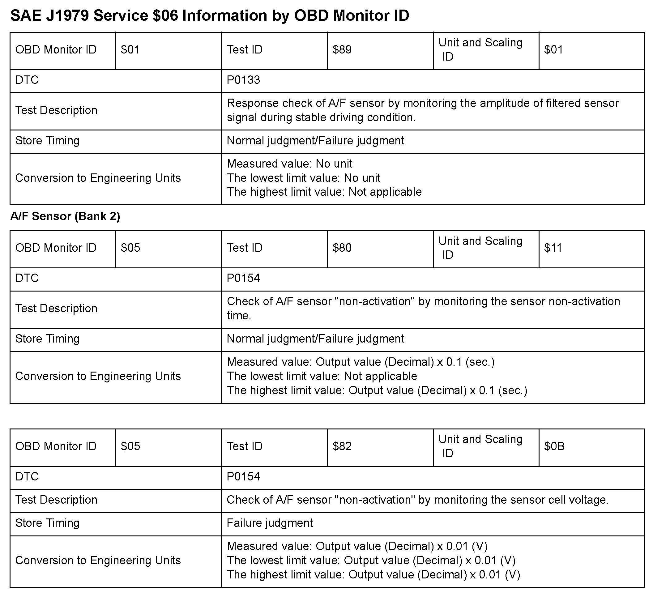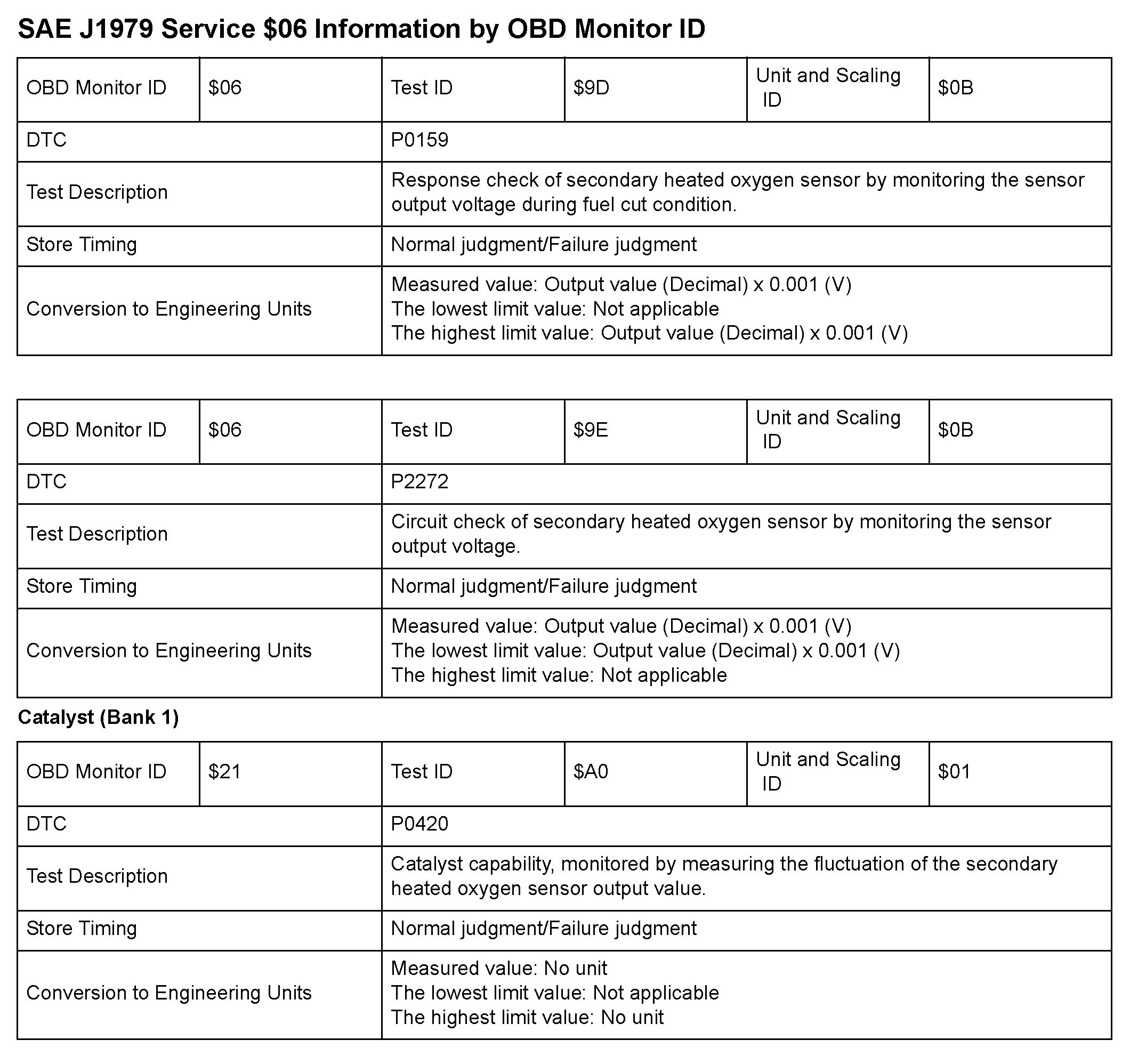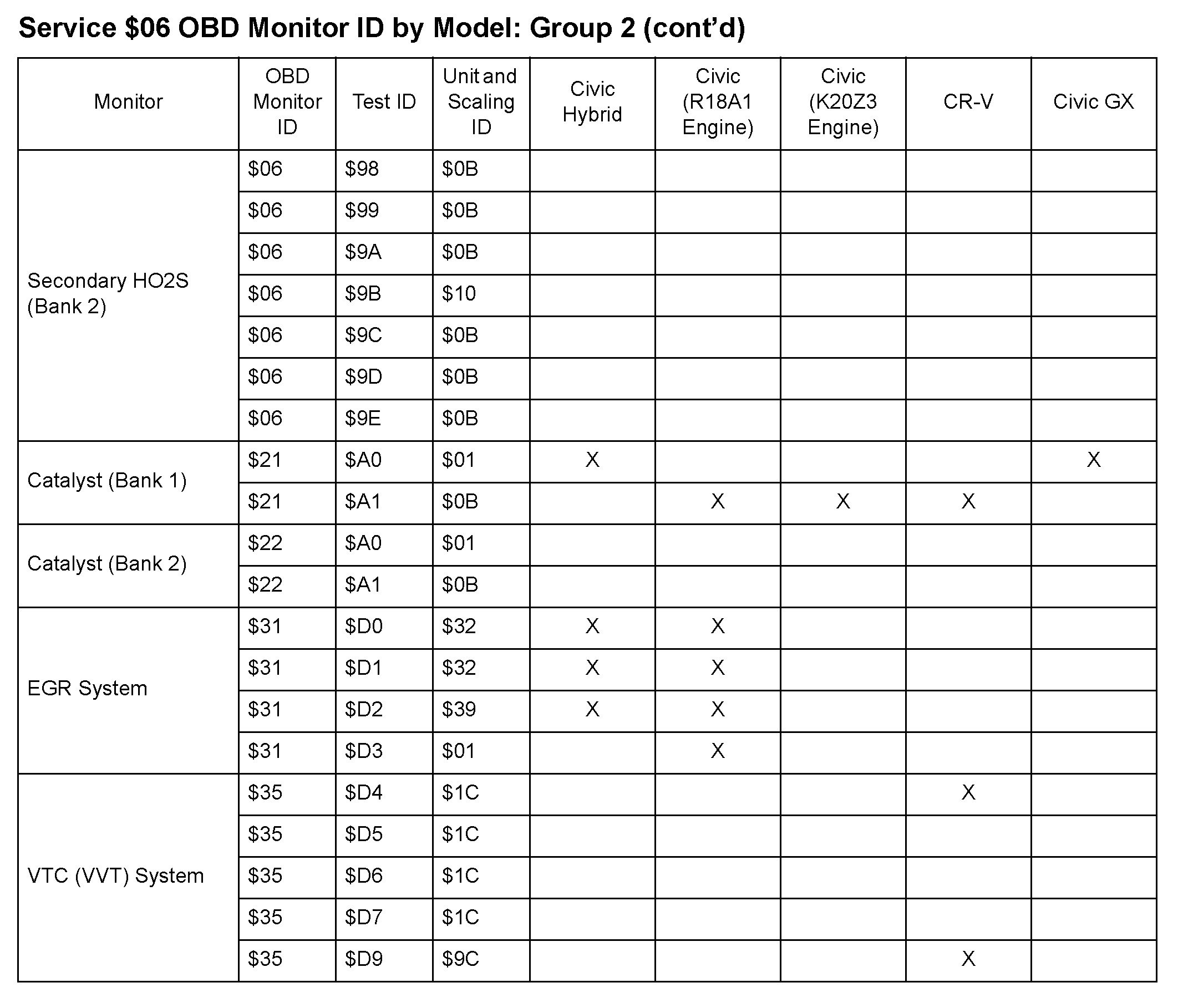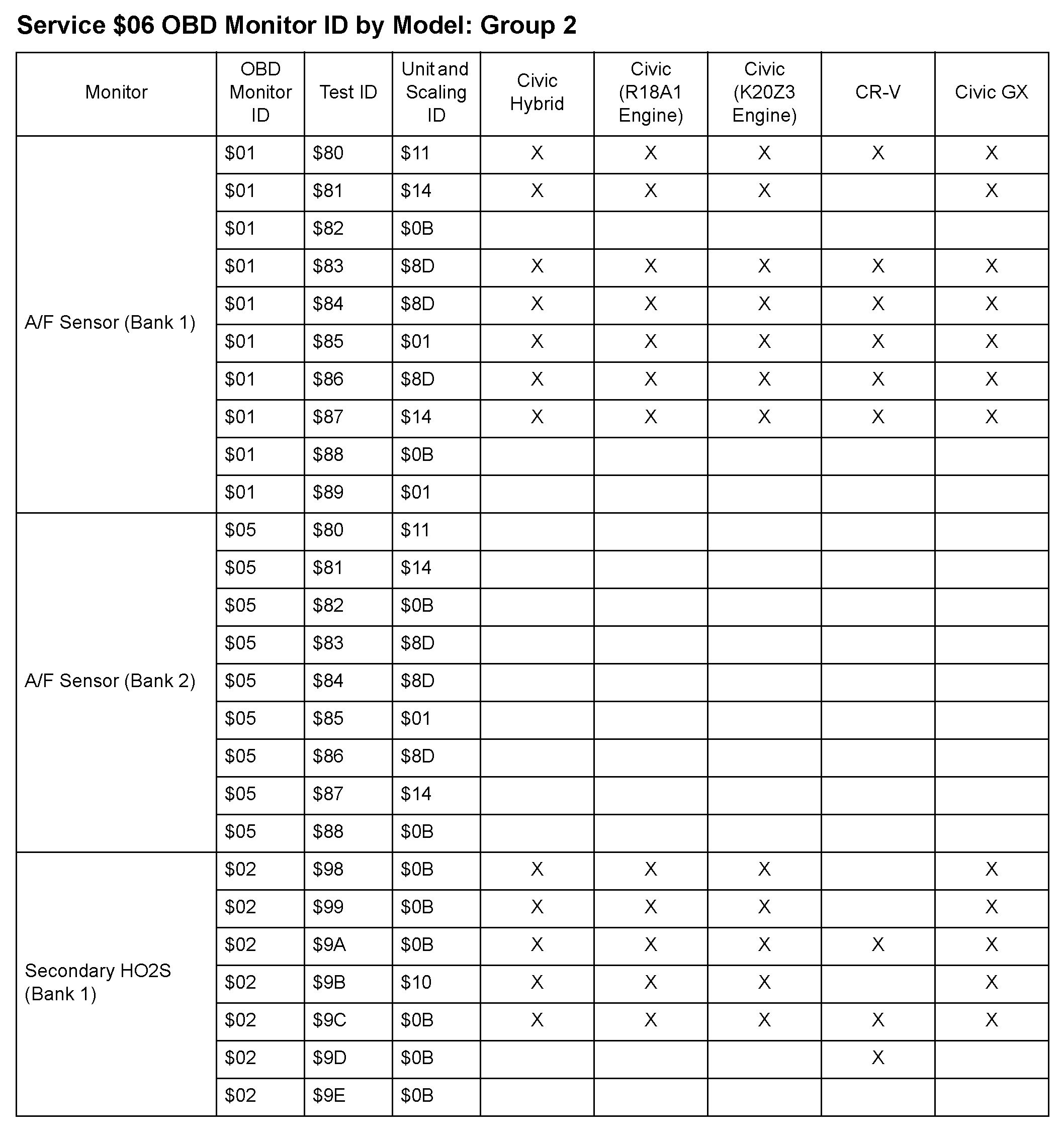 SAE J1979 Mode/Service $06 Test Information: All 2010 Hondas
