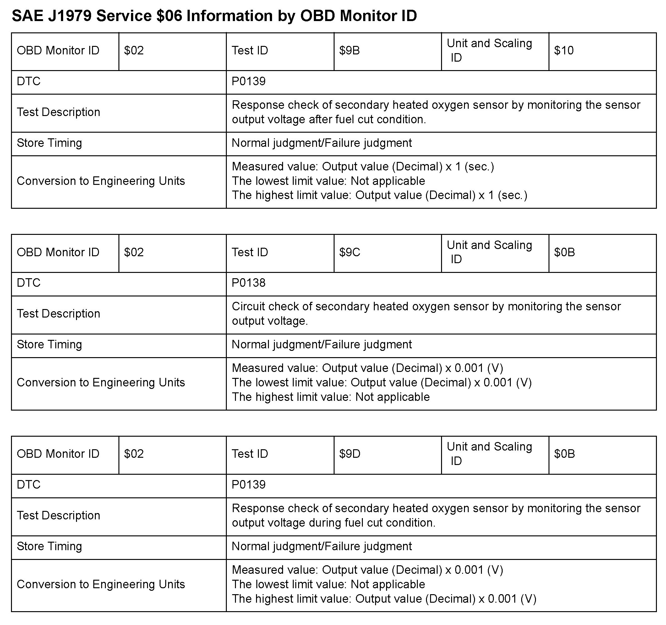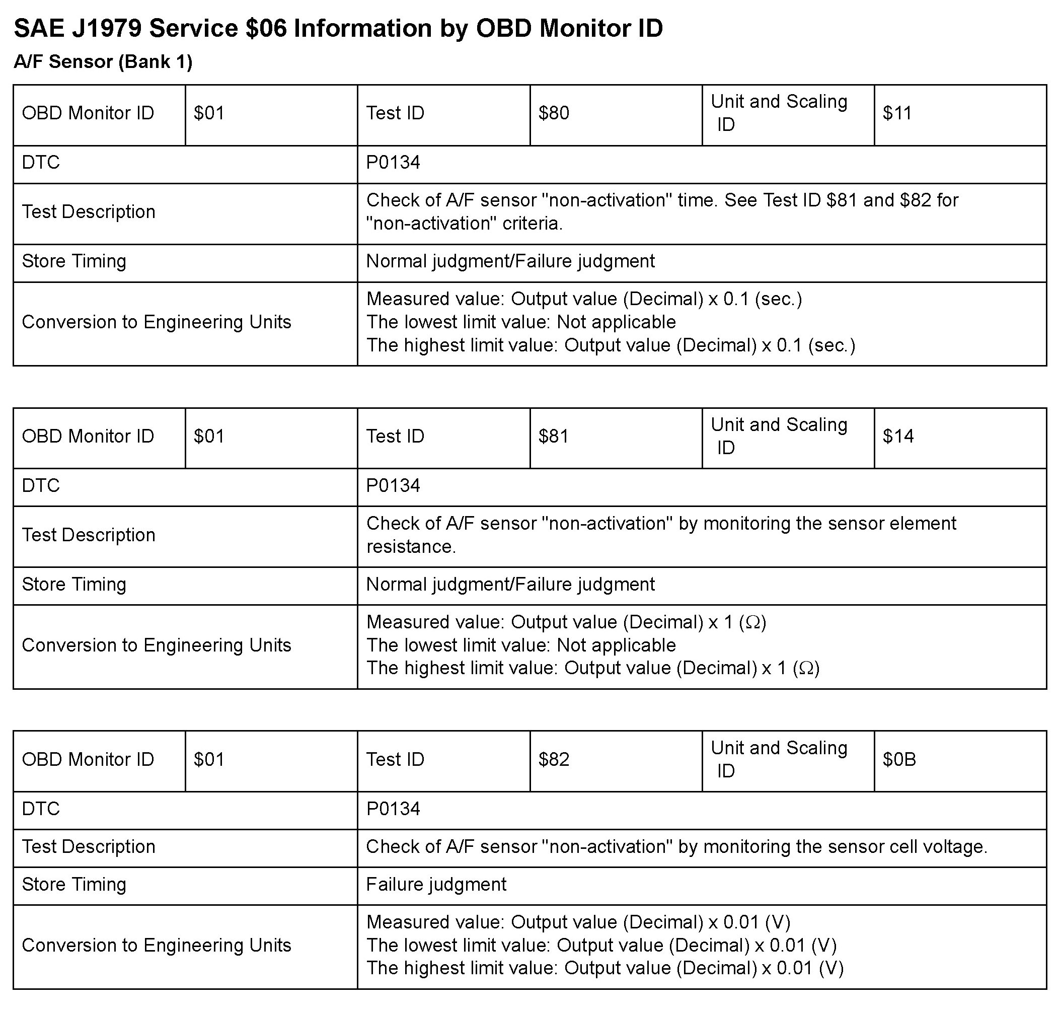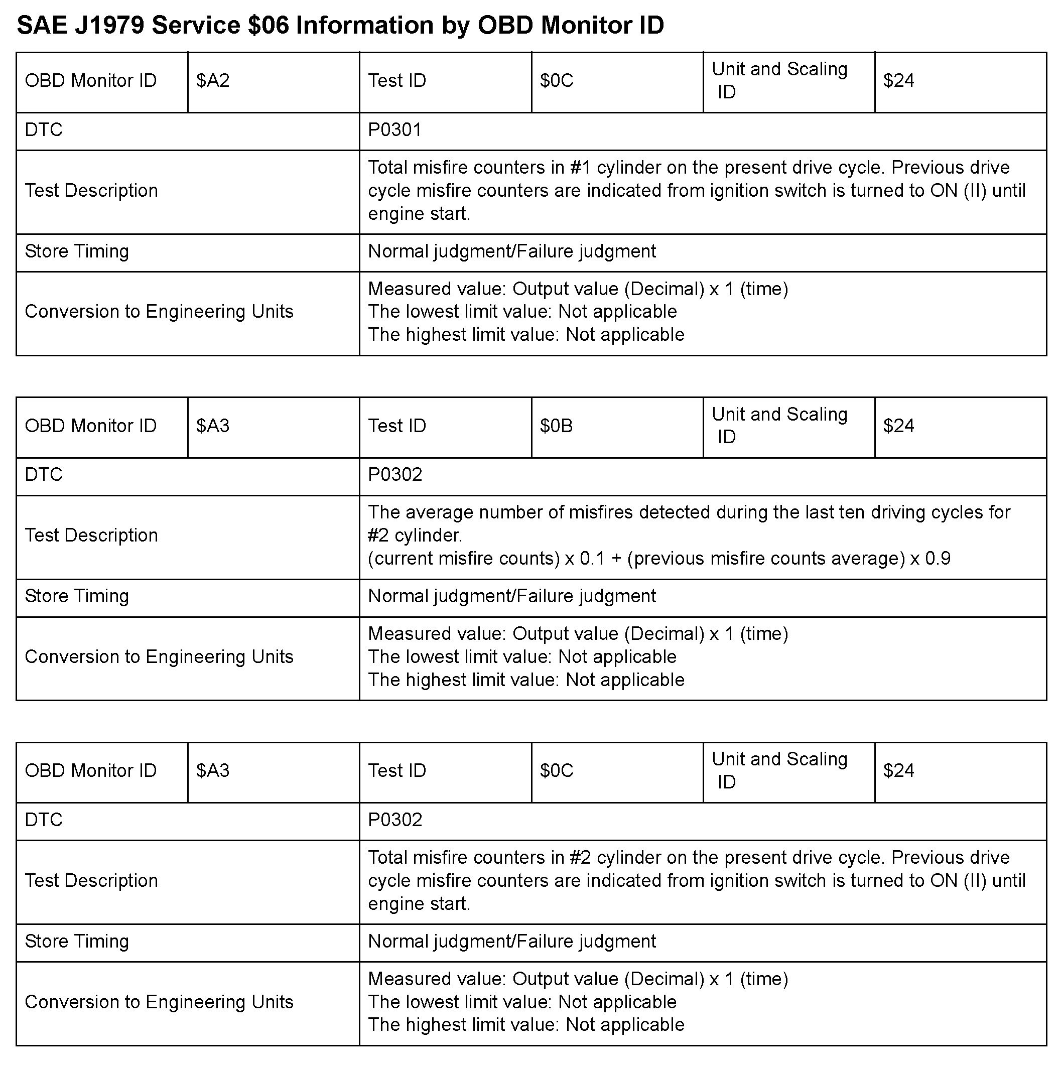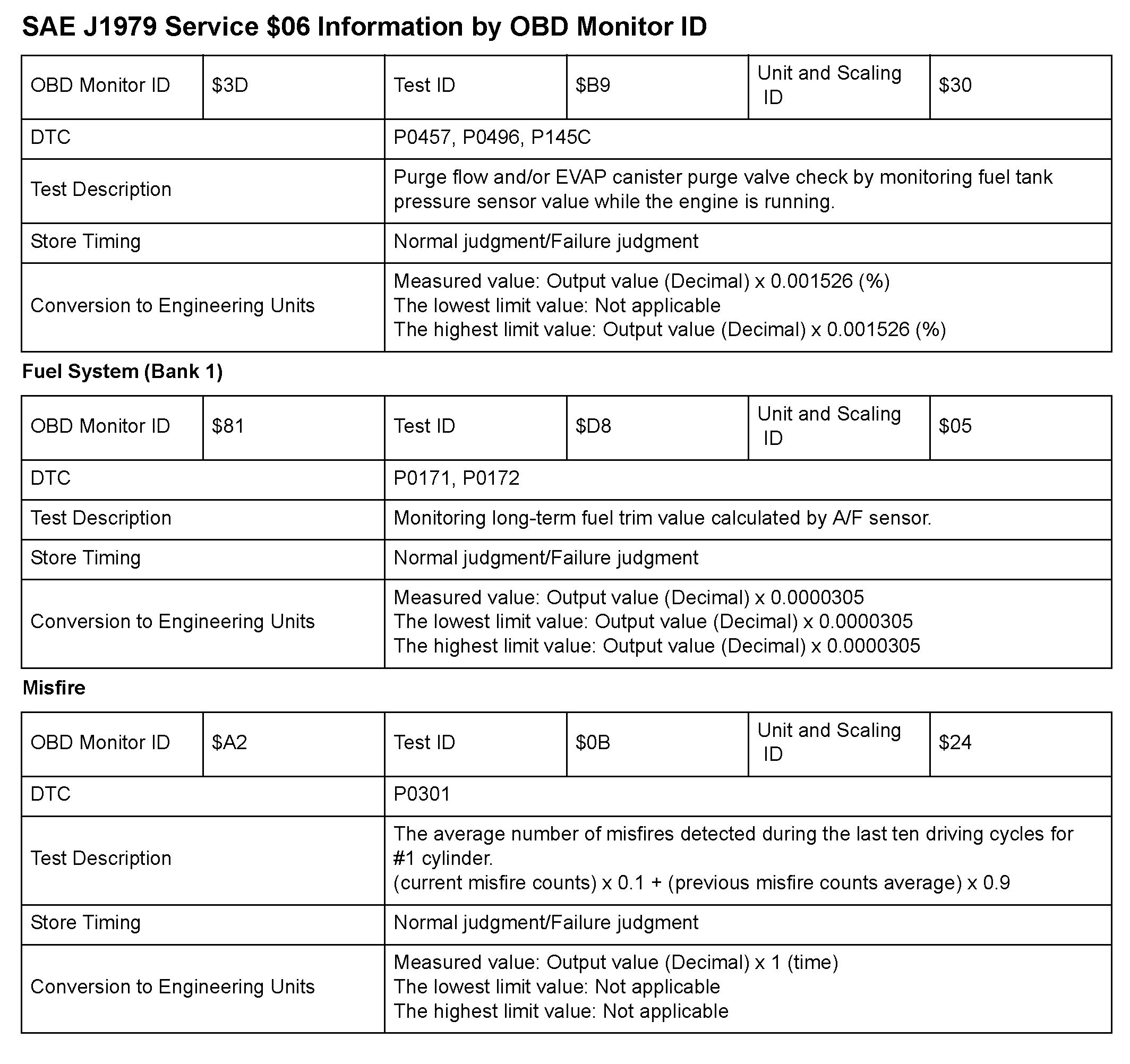 SAE J1979 Mode/Service $06 Test Information: All 2010 Hondas