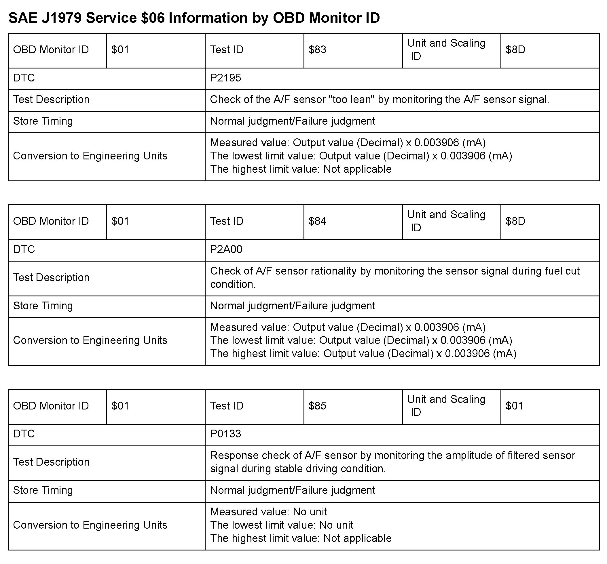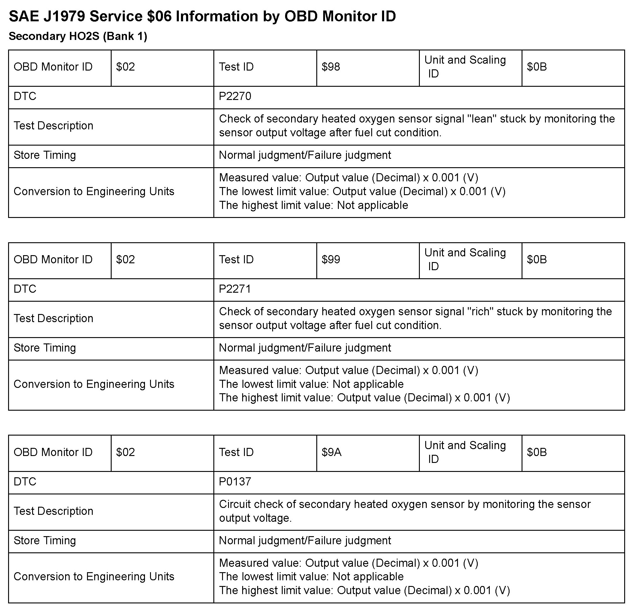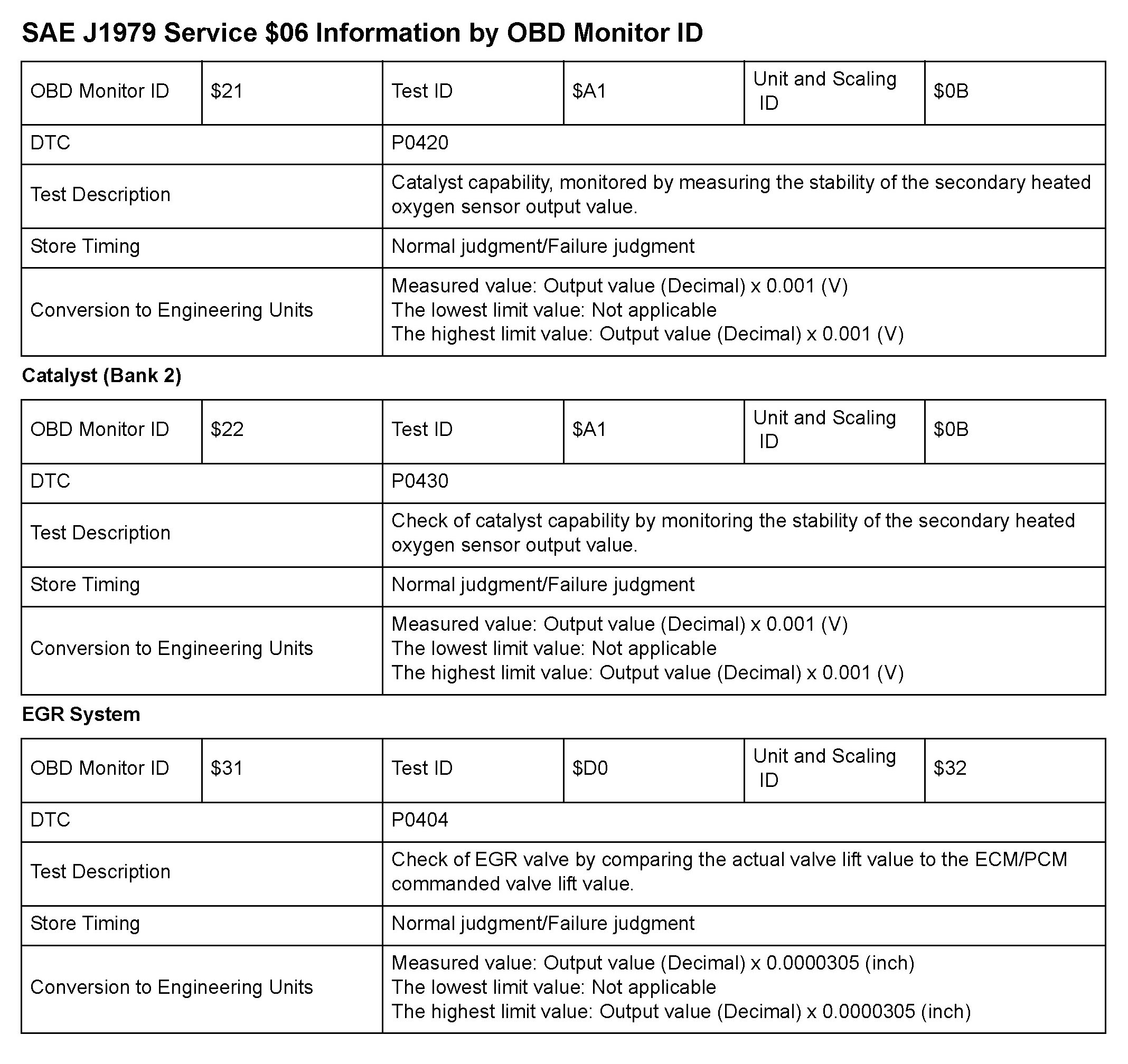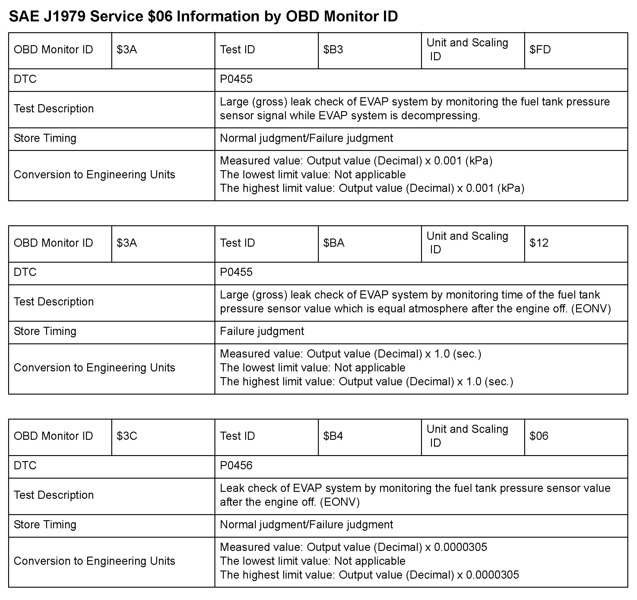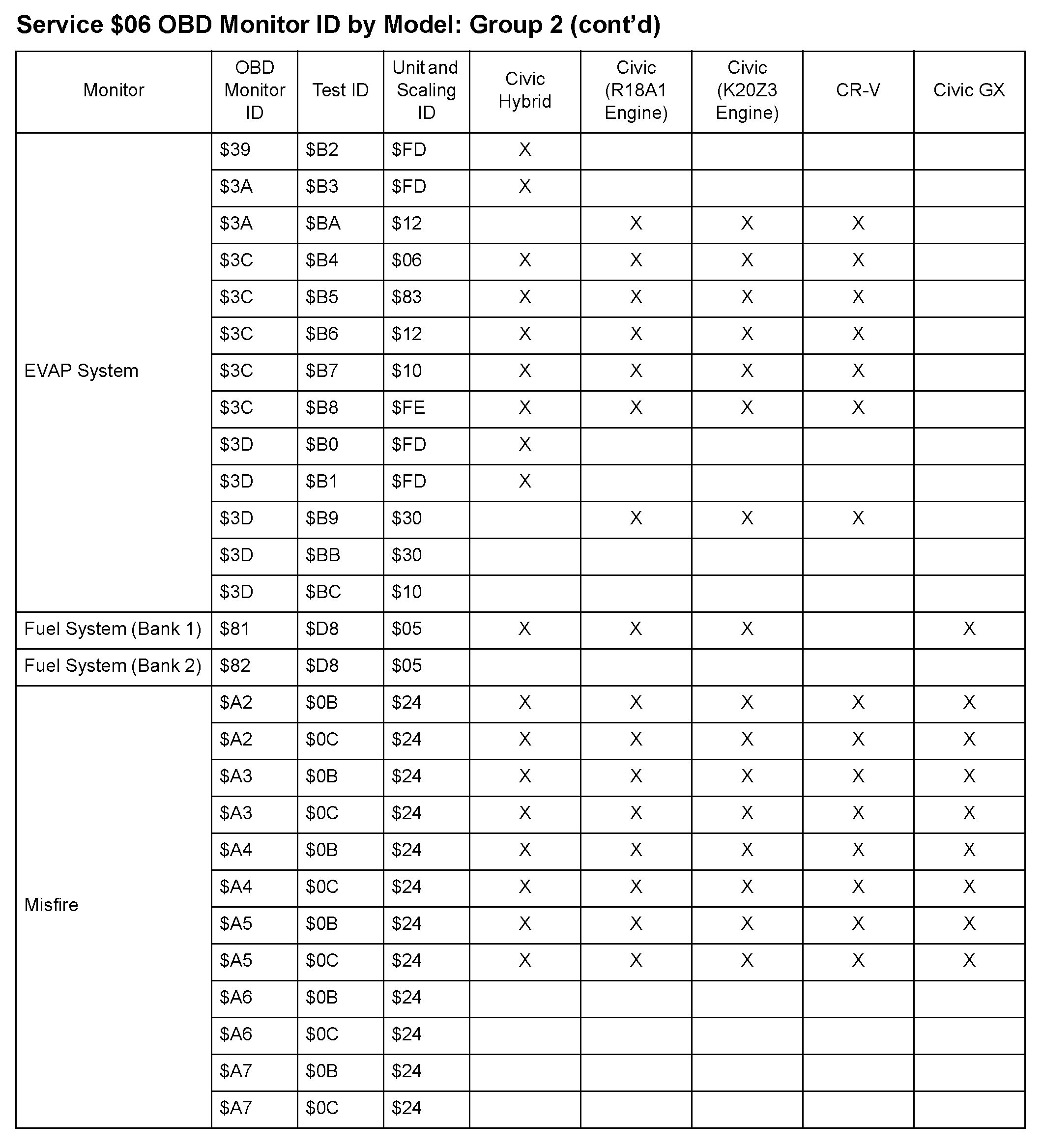 SAE J1979 Mode/Service $06 Test Information: All 2010 Hondas