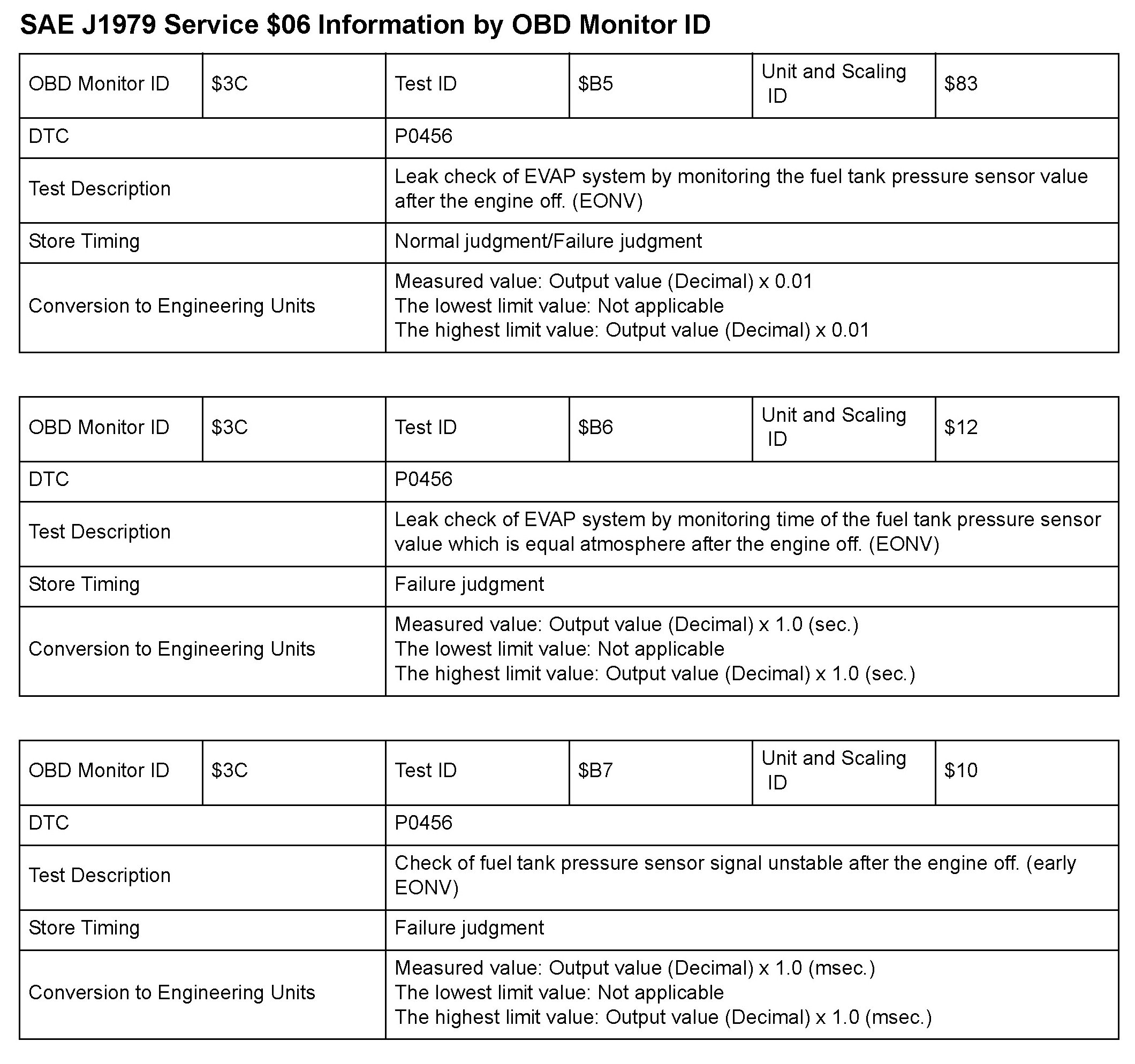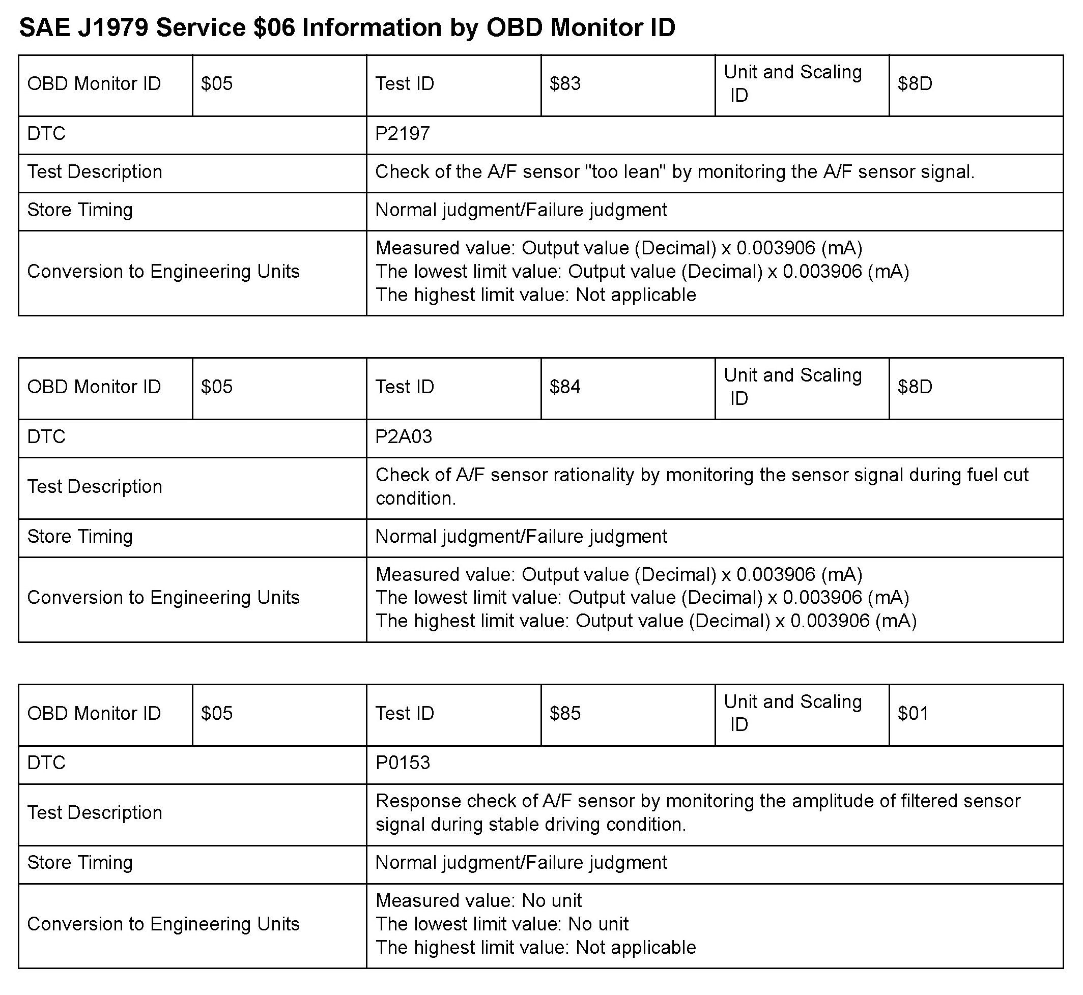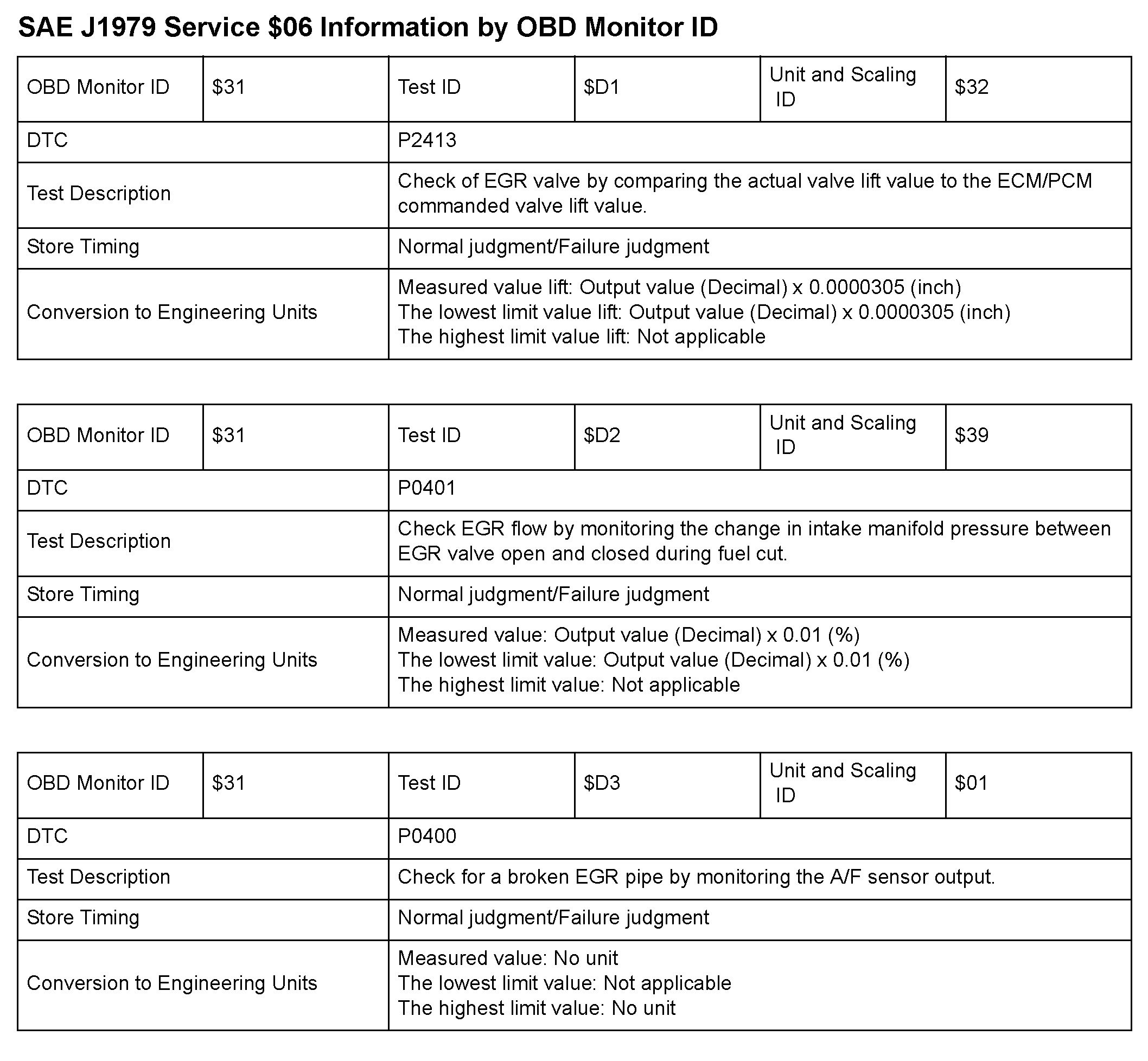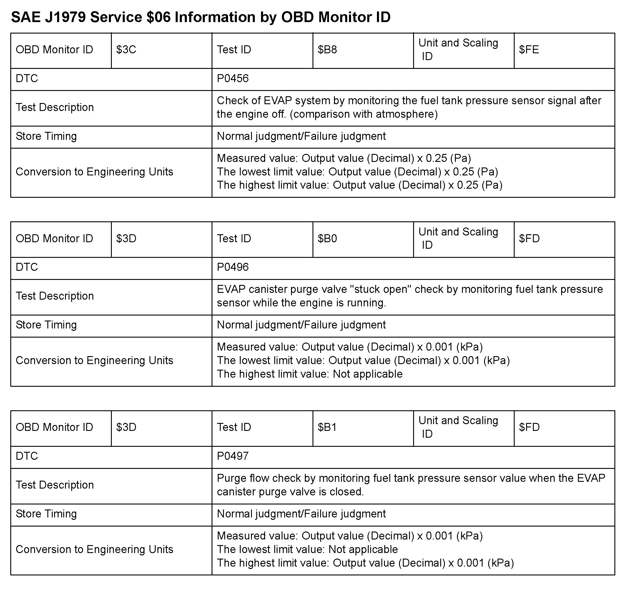 SAE J1979 Mode/Service $06 Test Information: All 2010 Hondas