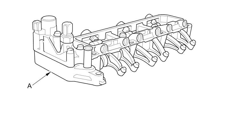 NOTE: When installing the front rocker arm assembly, refer to the camshaft rocker arm assembly, camshaft seal, and pulley installation procedure.