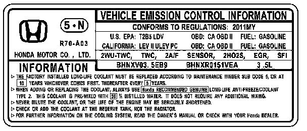 Under-Hood Emission Control Label