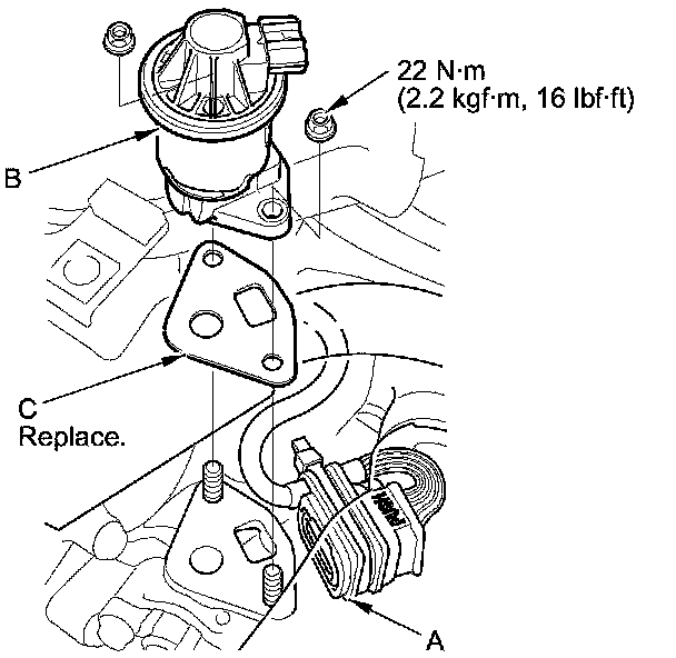 Install the parts in the reverse order of removal with a new gasket (C).