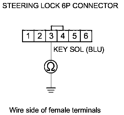 12. Check for continuity between steering lock 6P connector terminal No. 3 and body ground.