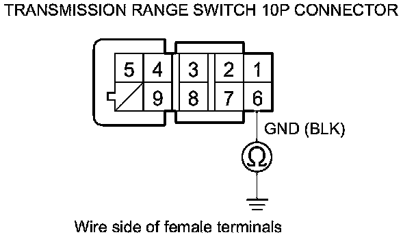 23. Check for continuity between transmission range switch 10P connector terminal No. 6 and body ground.