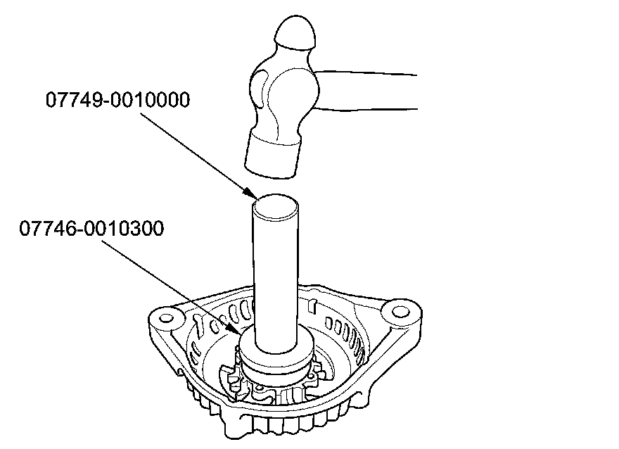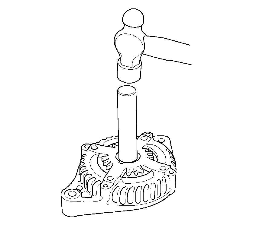 13. Install a new front bearing in the drive-end housing with a hammer, the driver handle, 15 x 135L, and the bearing driver attachment, 42 x 47 mm.