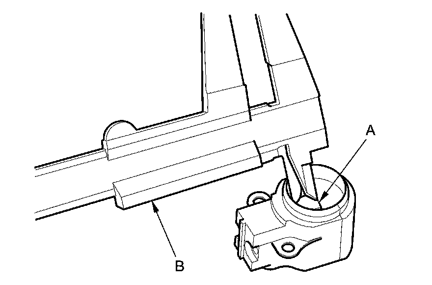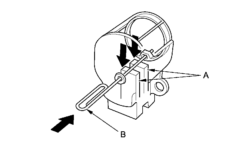 21. Push the brushes (A) in, then insert a pin or drill bit (B) (about 1.6 mm (1/16 in) diameter) to hold them there.