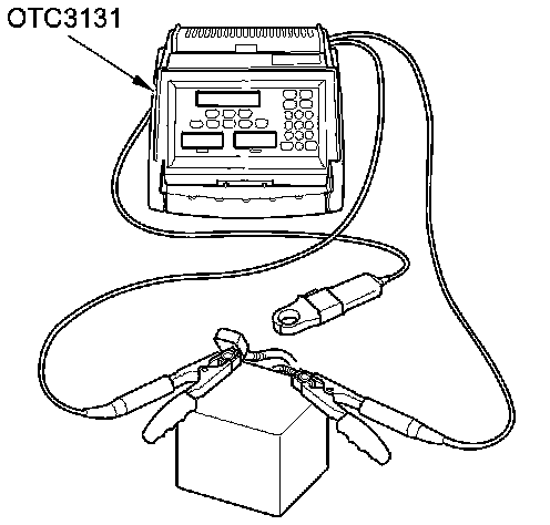 1. Connect the alternator, regulator, battery, and starter tester (OTC3131) to the battery as shown.