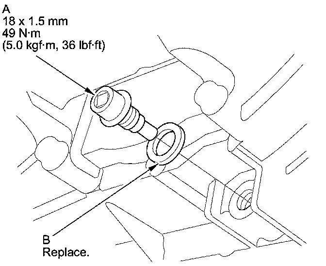 3. Remove the drain plug (A), and drain the automatic transmission fluid (ATF).