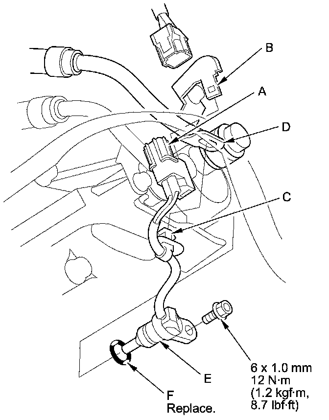 7. Remove the ATF temperature sensor (E), and replace the sensor.