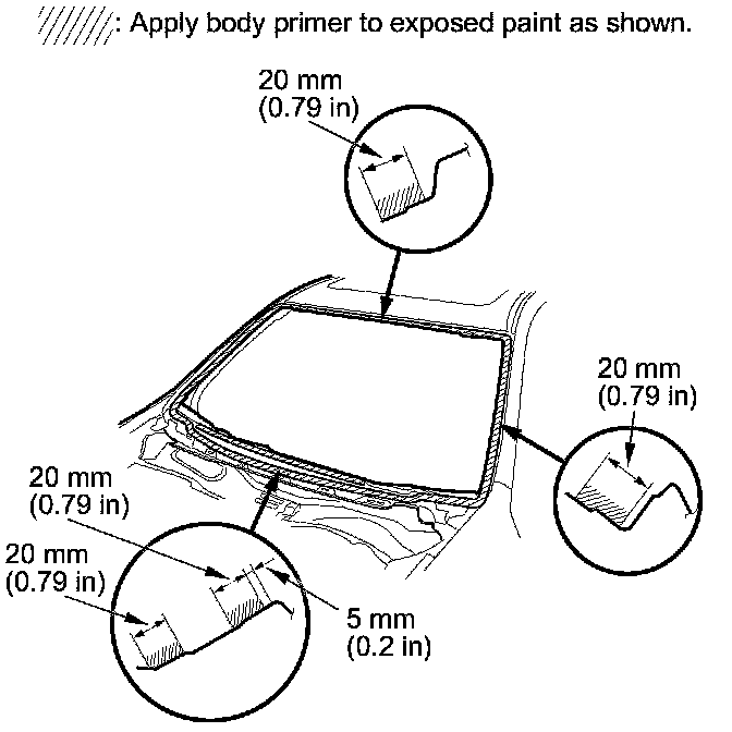 - Never touch the primed surfaces with your hands. If you do, adhesive may not bond to the windshield properly, causing a leak after the windshield is installed.