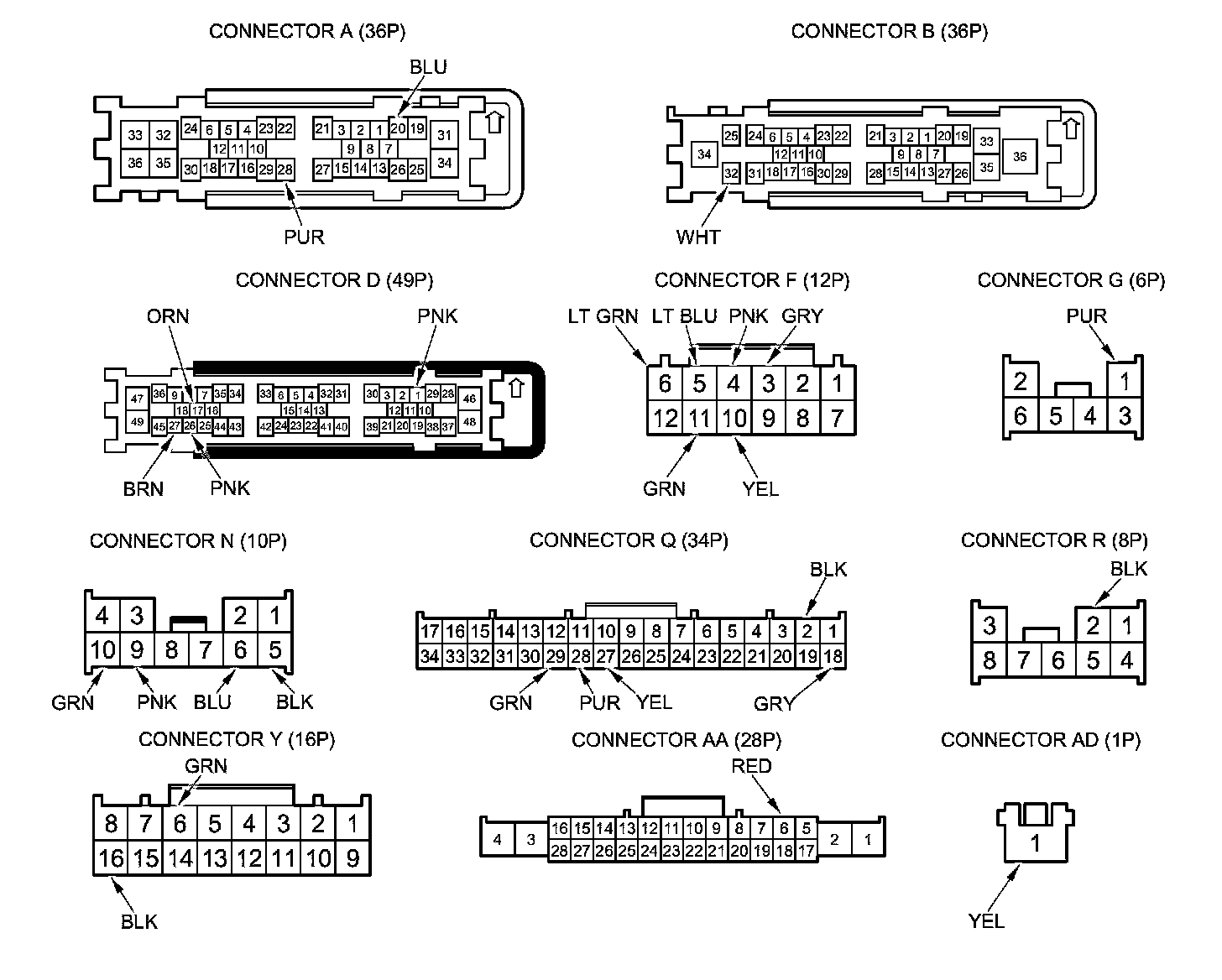 NOTE: All connector views are wire side of female terminals.