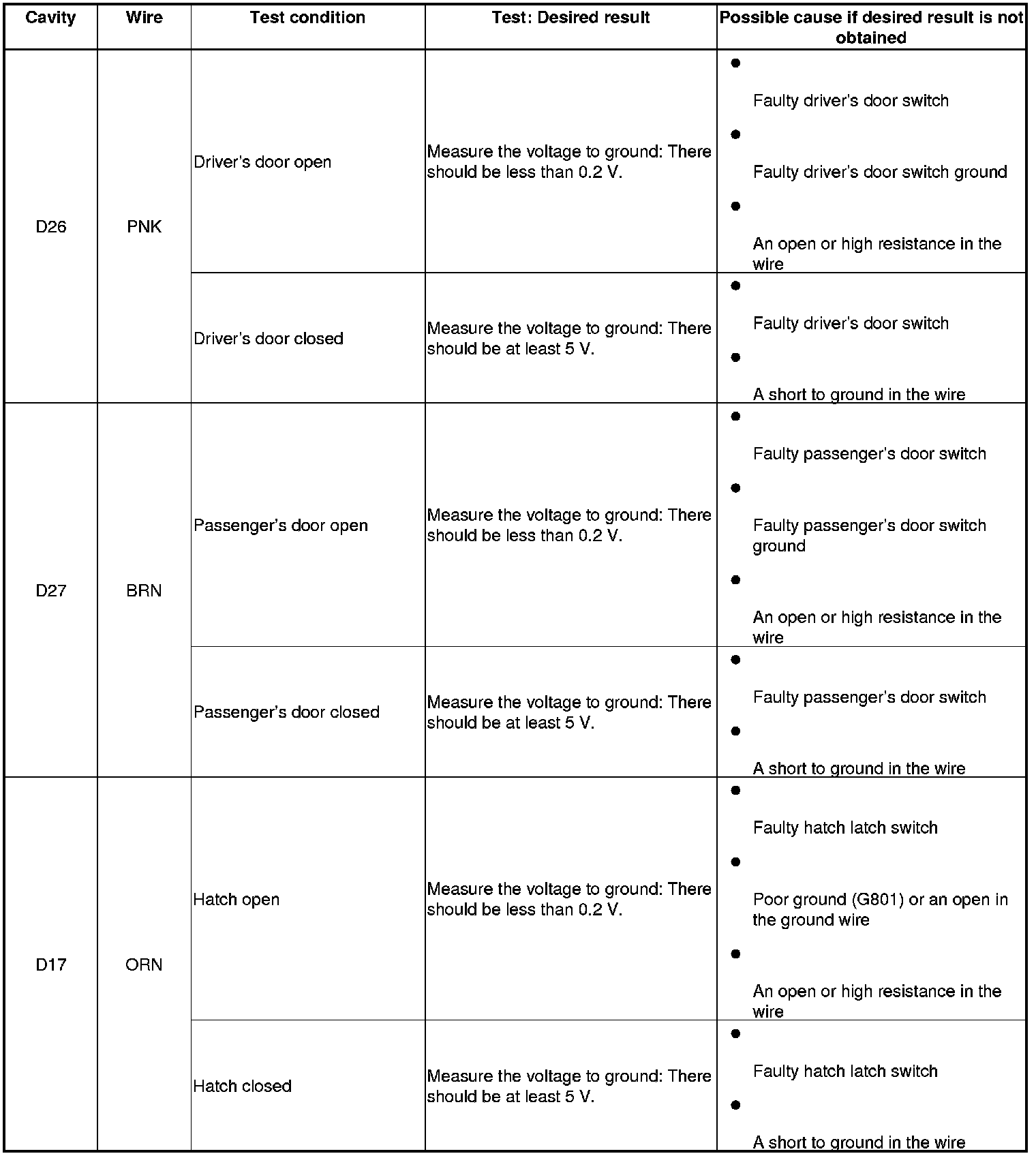 5. With the connectors still disconnected, do the following input tests:
