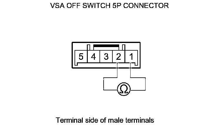 5. On the switch side, check for continuity between VSA OFF switch 5P connector terminals No. 1 and No. 2. There should be continuity at all times.