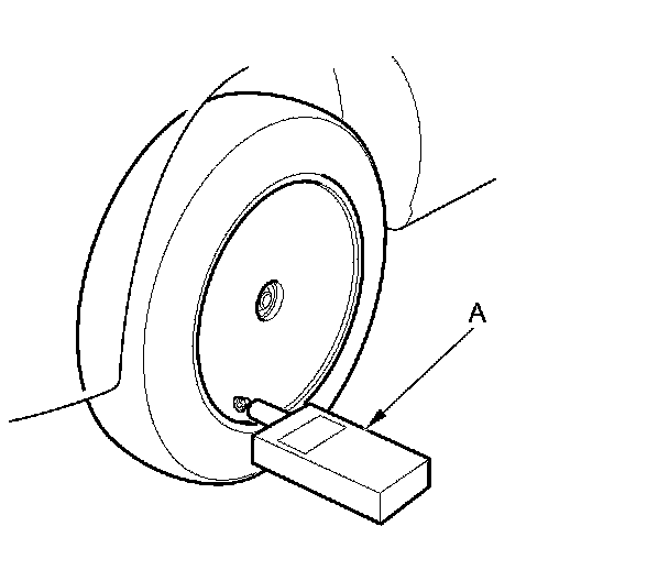 6. Hold the TPMS tool (A) near the valve stem of one wheel, and activate the tire pressure sensor.