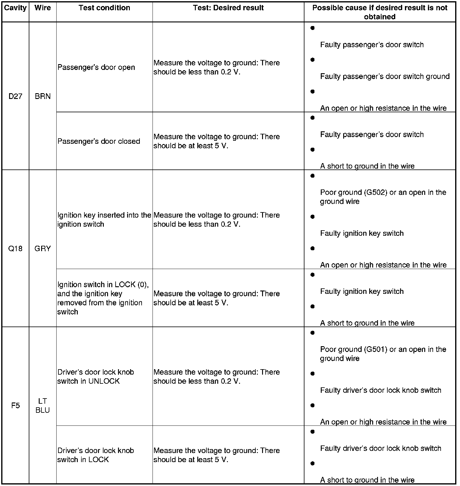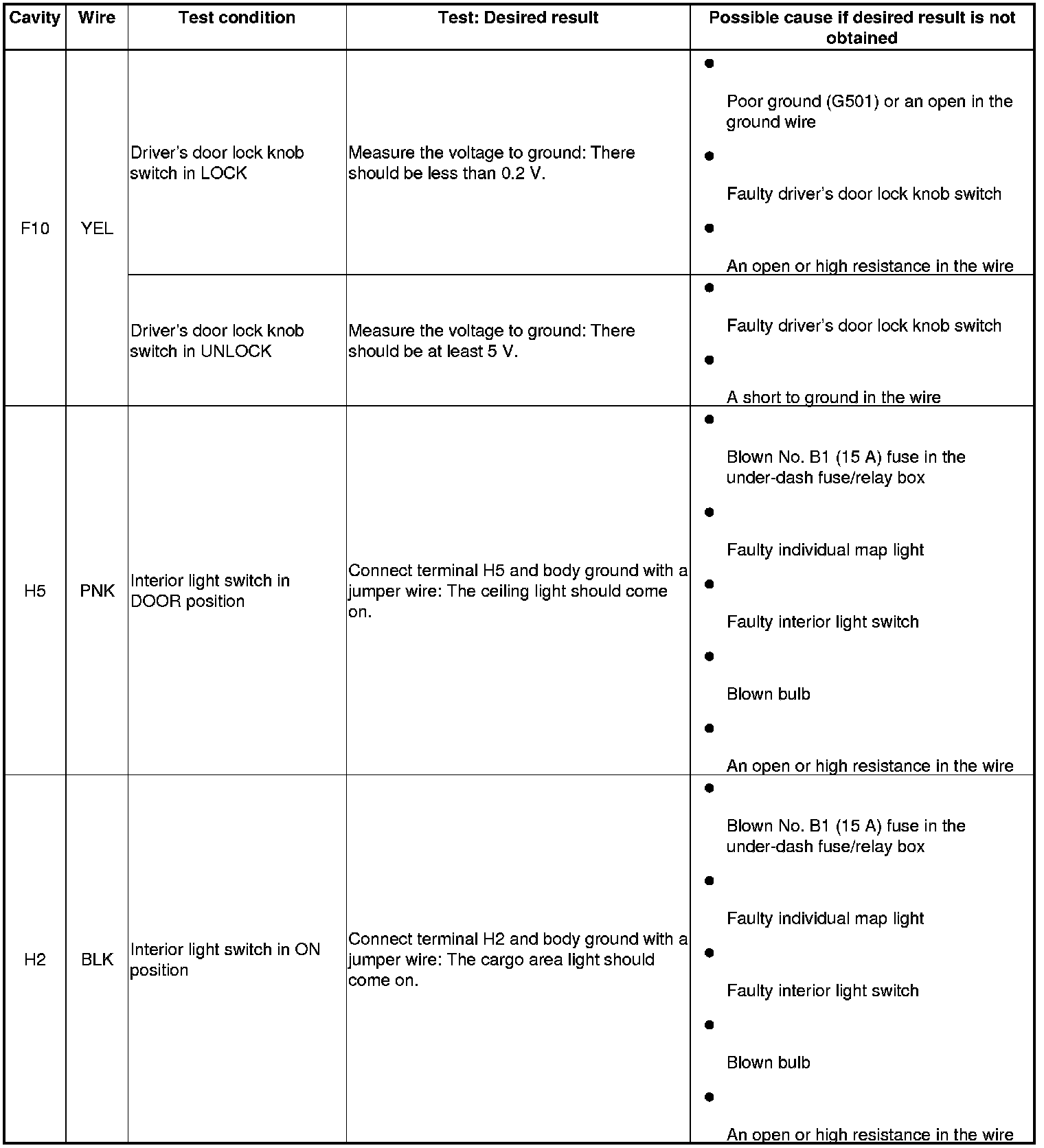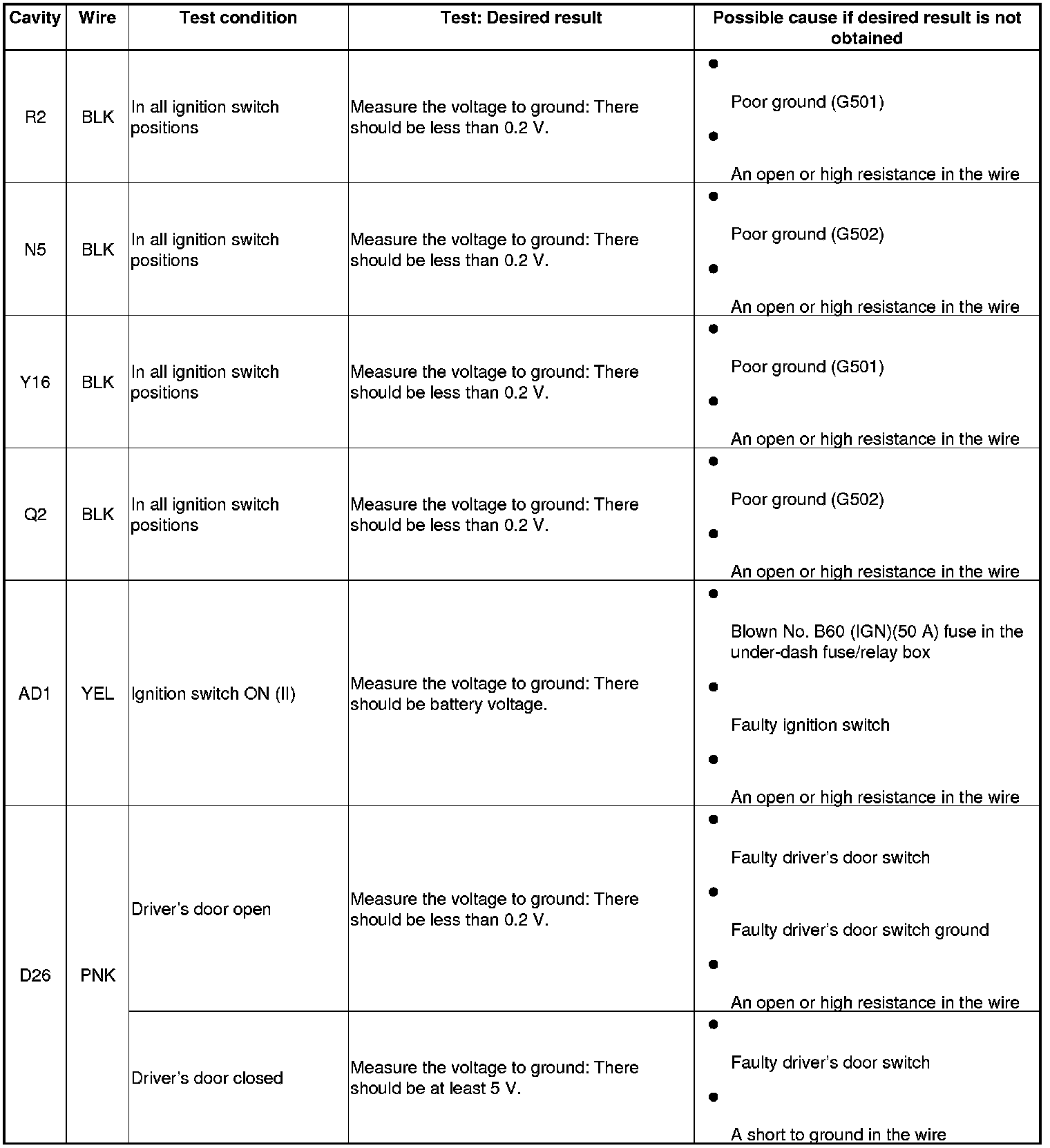 NOTE: Before testing, check the No. B1 (15 A) and No. B22 (7.5 A) fuse in the under-dash fuse/relay box.