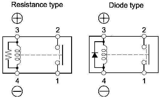 - There should be continuity between terminals No. 1 and No. 2 when battery power is connected to terminal No. 3, and body ground is connected to terminal No. 4.
