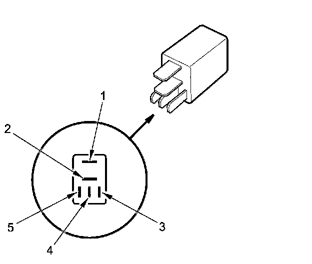 - There should be continuity between terminals No. 1 and No. 2 when battery power is connected to terminal No. 3, and body ground is connected to terminal No. 5.