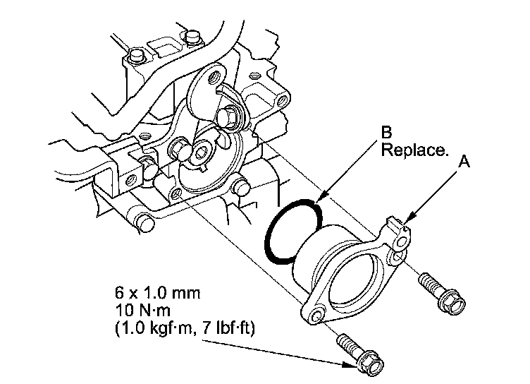 3. Install the camshaft thrust cover (A) with a new O-ring (B).
