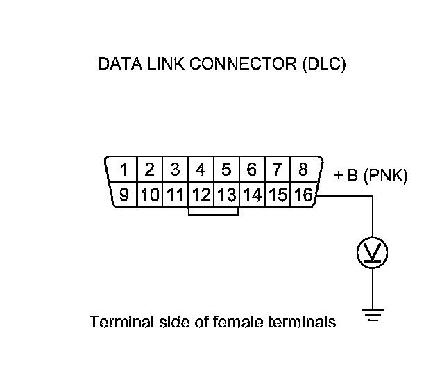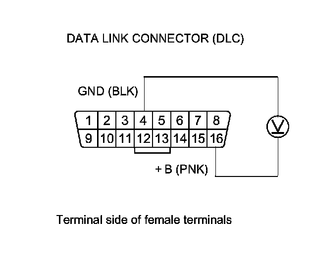 27. Measure the voltage between DLC terminal No. 16 and body ground.