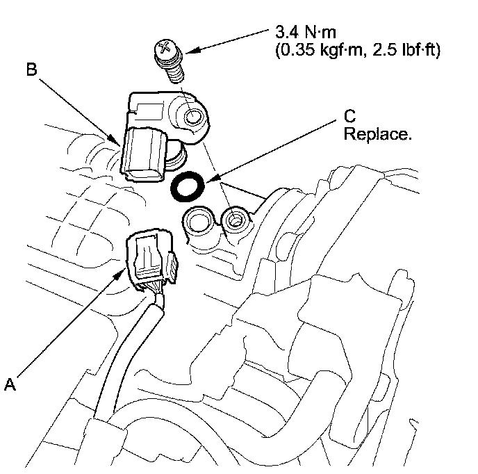 Install the parts in the reverse order of removal with a new O-ring (C).