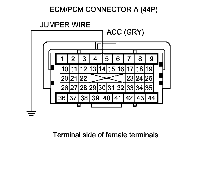 13. Momentarily connect ECM/PCM connector terminal A14 to body ground with a jumper wire several times.