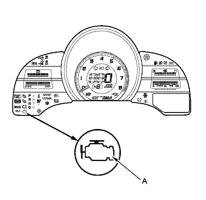 1. Start the engine, and check the MIL (A).