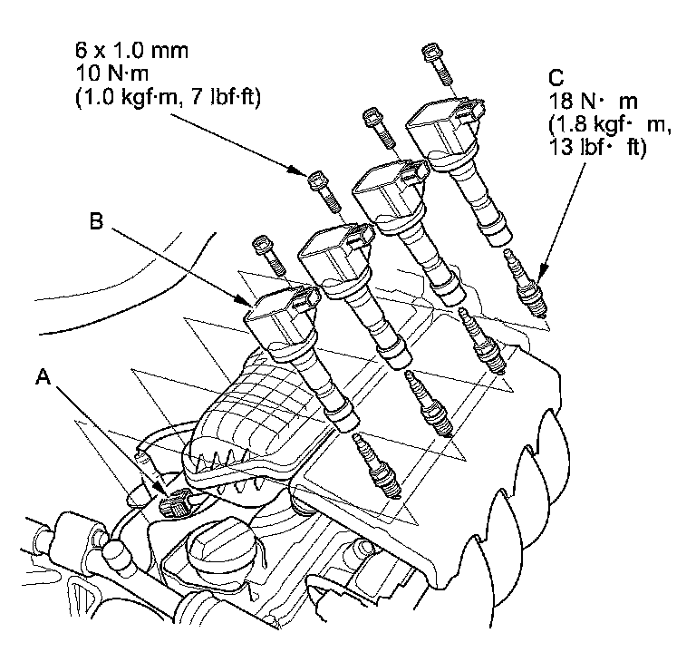 3. Remove the spark plugs (C), and inspect them Testing and Inspection.