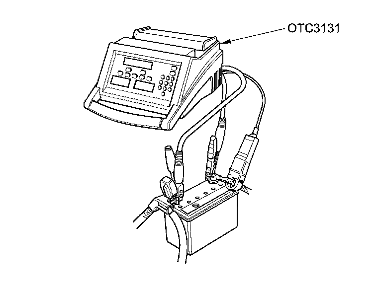 14. Connect the alternator, regulator, battery, and starter tester (OTC3131) to the battery.