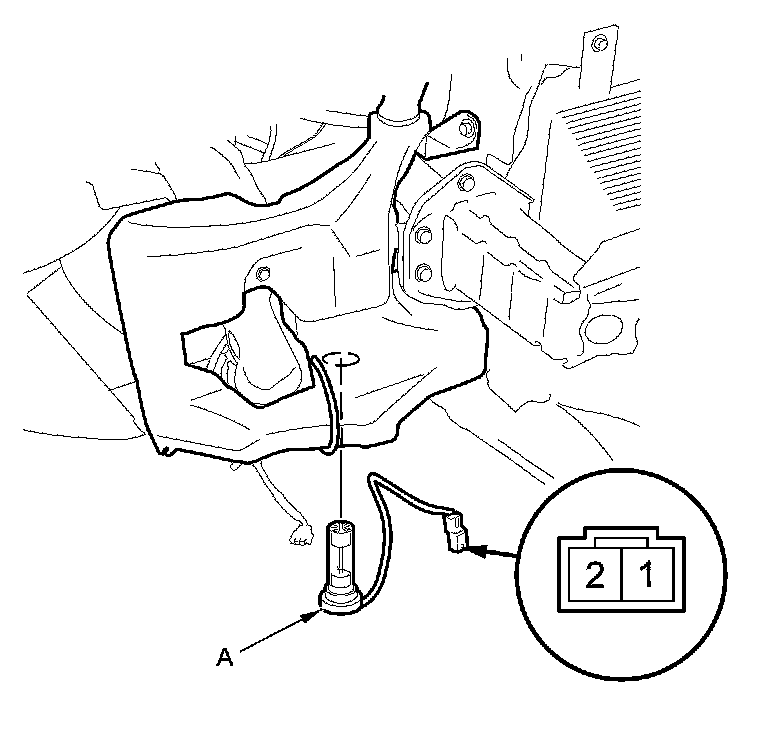 3. Remove the washer fluid level switch (A) from the washer reservoir.