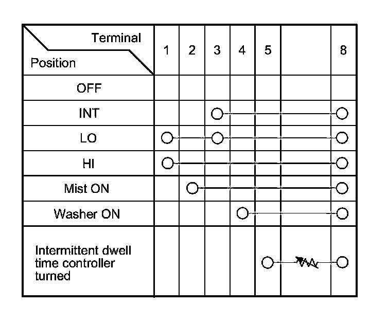5. Check for continuity between the terminals in each switch position according to the table.