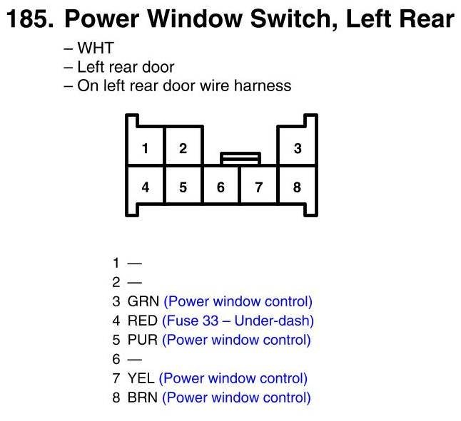 View 185 - Power Window Switch, Left Rear Connector View