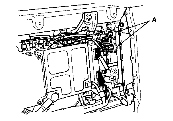 7. Measure voltage at the battery module terminals (A). There should be 30 V or less. If more than 30 V is present, there is a problem in the circuit; do the DTC troubleshooting first.