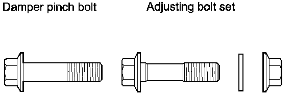 - The camber angle can be adjusted up to ±20 ' (center of tolerance) by replacing one damper pinch bolt with the adjusting bolt.