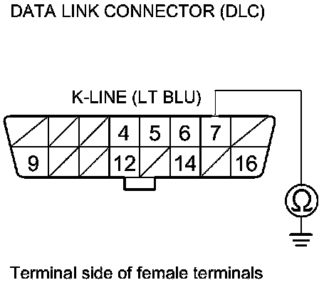 23. Check for continuity between DLC terminal No. 7 and body ground.