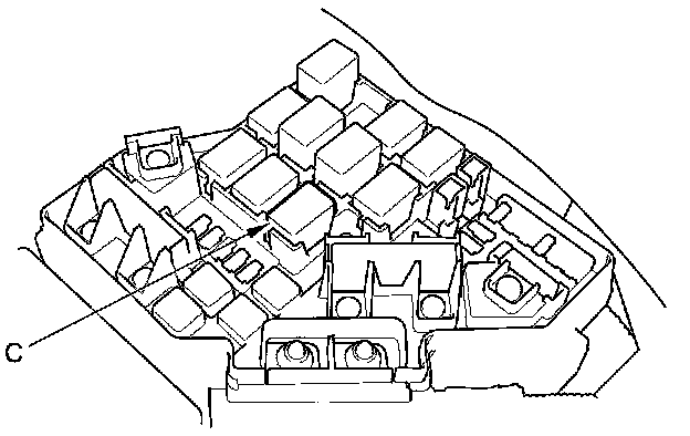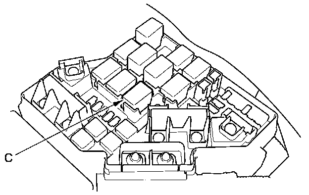 68. Remove PGM-FI main relay 1 (C) from the under-hood fuse/relay box.