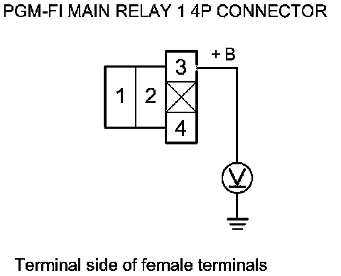 65. Measure the voltage between PGM-FI main relay 1 4P connector terminal No. 3 and body ground.