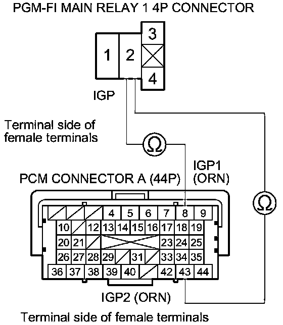 52. Test PGM-FI main relay 2 Testing and Inspection.