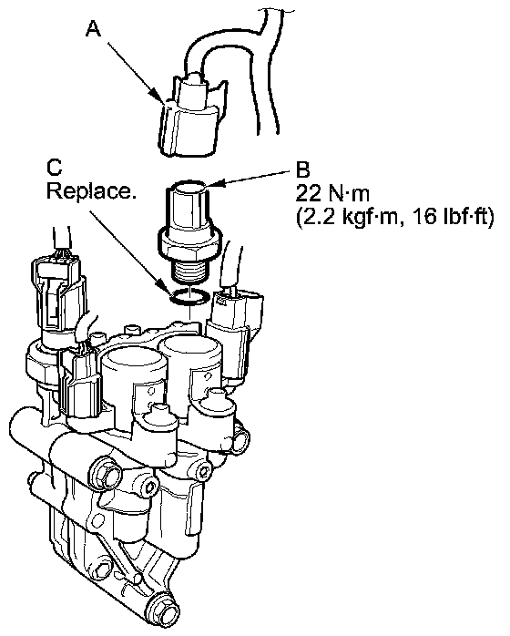 3. Install the parts in the reverse order of removal with a new O-ring (C).