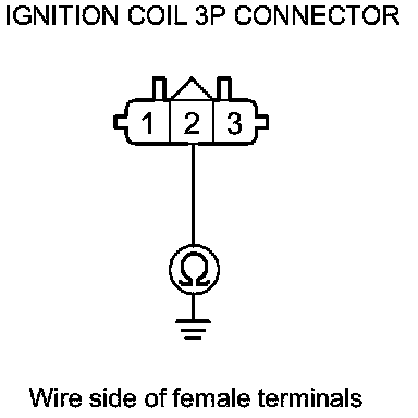 5. Check for continuity between ignition coil 3P connector terminal No. 2 and body ground.
