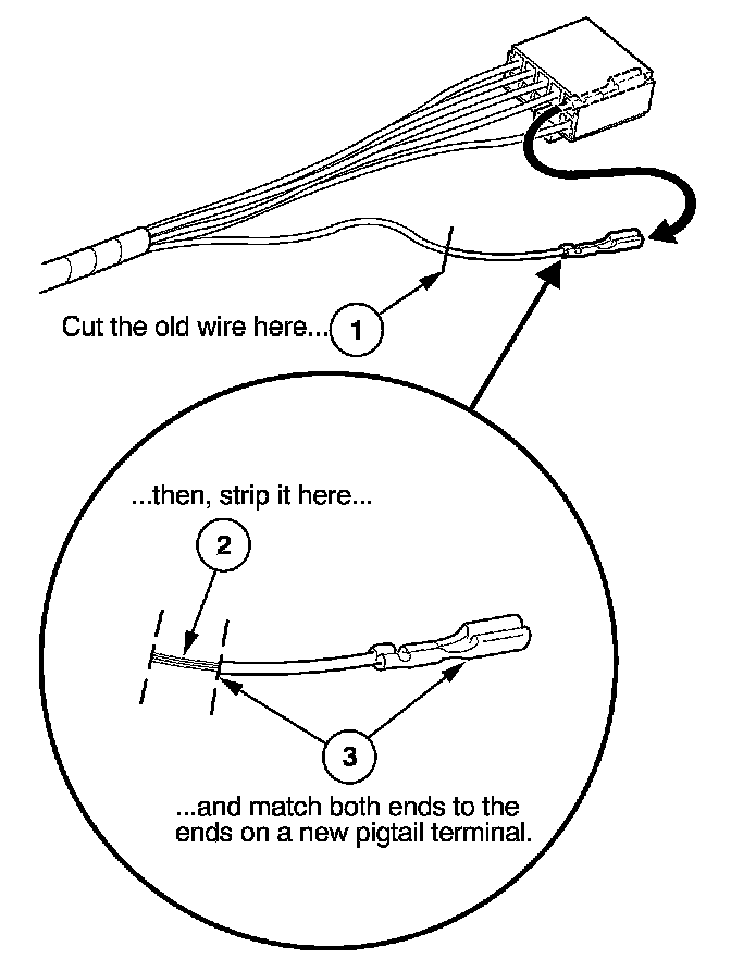 3. Select a pigtail terminal that matches the original wire at both ends (same kind of terminal and same diameter bare wire).